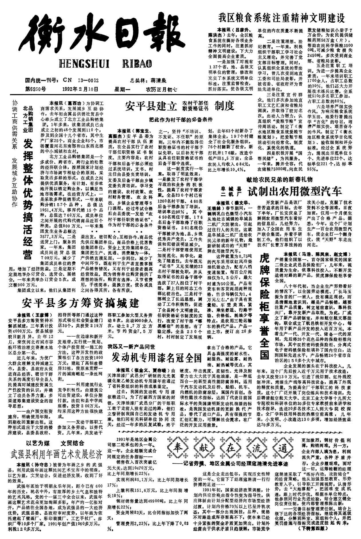 1992年2月10日《衡水日报》