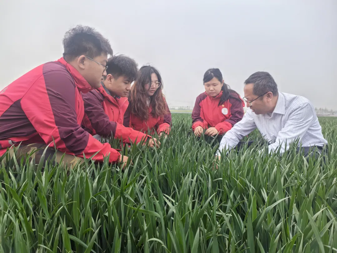 “观察麦子的叶色、茎粗,判断水、肥给得是不是足够,现在我们看的这亩地还不错。”在麦田里,张卫峰带着学生们半蹲成一圈,一边检查麦子的生长情况,一边给学生们讲解。