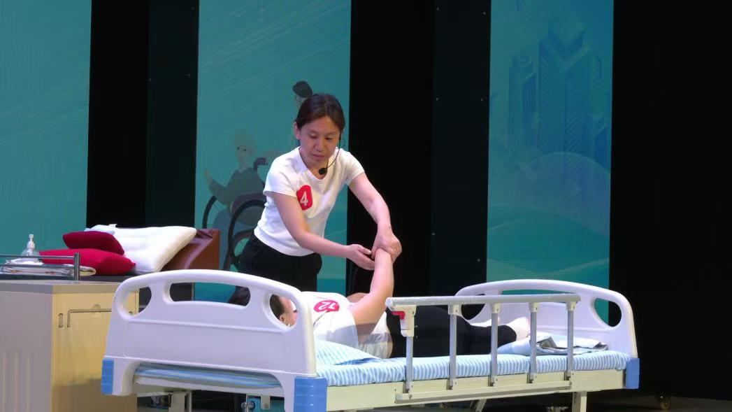 大赛重点考察高质量满足老年人在生理、心理和社会方面的整体需求,帮助老年人进行床上翻身运动训练以及两点步行法、三点步行法等。在规定时间内考核选手的临床思维能力、专业操作技能、人文关怀能力,确保他们能为老年人提供高质量的护理服务。