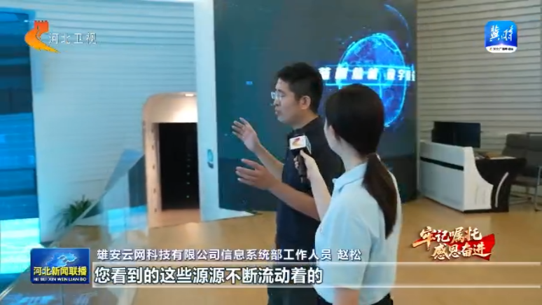 您看到的这些源源不断流动着的,其实就是我们生活当中看不到的一些数据。像雄安新区新建的每一栋建筑、每一条道路、每一条地下的管线,甚至数字城市运行每分每秒的数据,都在这里汇聚生长,同时也映射到了雄安新区的"云上一座城"。