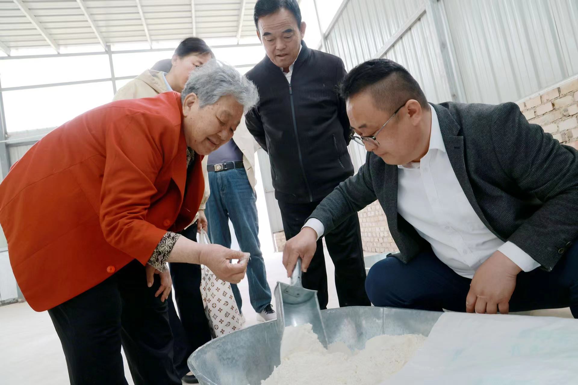 他们首先来到了垂麦村爱心磨坊,这一公益生产项目是由返乡爱心人士王保君投资兴建,旨在免费为村民们提供小麦、玉米等谷物的精细化加工服务,极大地方便了村民们的日常生活。进入爱心磨坊后,林秀贞与王保君进行了深入细致的交流。只见她俯下身去,认真查看面粉的品质,询问生产工艺以及公益磨面的具体流程等。“爱心磨坊不仅仅为村民们的生活提供了便利,还是对乡土情怀的一种别样留存。我希望爱心磨坊能够充分发挥最大效用,让更多乡亲们吃上健康、放心的面粉。”王保君满含深情地说道。