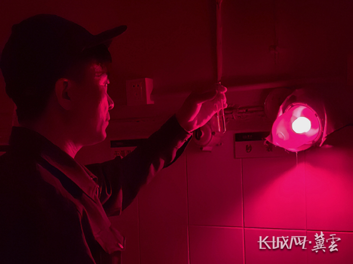 “乳剂是制作感光胶片的关键原料,具有感光特性,对环境亮度有严格要求,所有试验必须在暗室内进行。”张宏伟回忆介绍说,刚工作时走进车间暗室,别说进行生产操作了,就连暗室里的设备、仪器都看不清,每动一下、每走一步都有可能碰到设备,过了一年多才适应了暗室的环境。