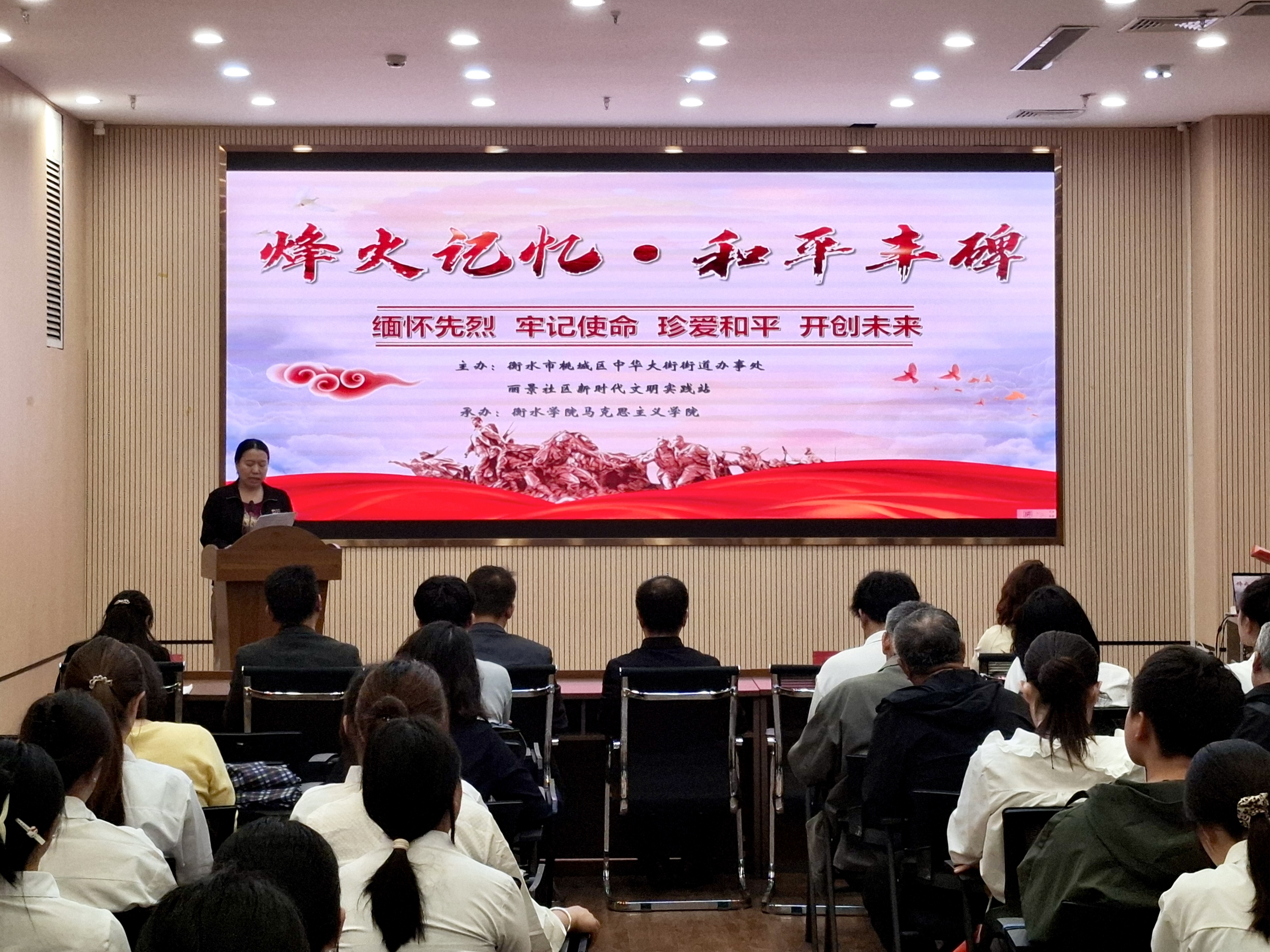 5月8日,“烽火记忆·和平丰碑”主题思政课活动在桃城区中华大街街道党群服务中心成功举办。此次活动由桃城区中华大街街道办事处、丽景社区新时代文明实践站联合主办,衡水学院马克思主义学院承办,旨在进一步深化爱国主义教育,涵养新时代青年家国情怀。