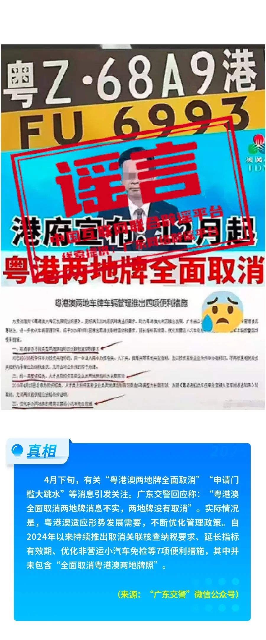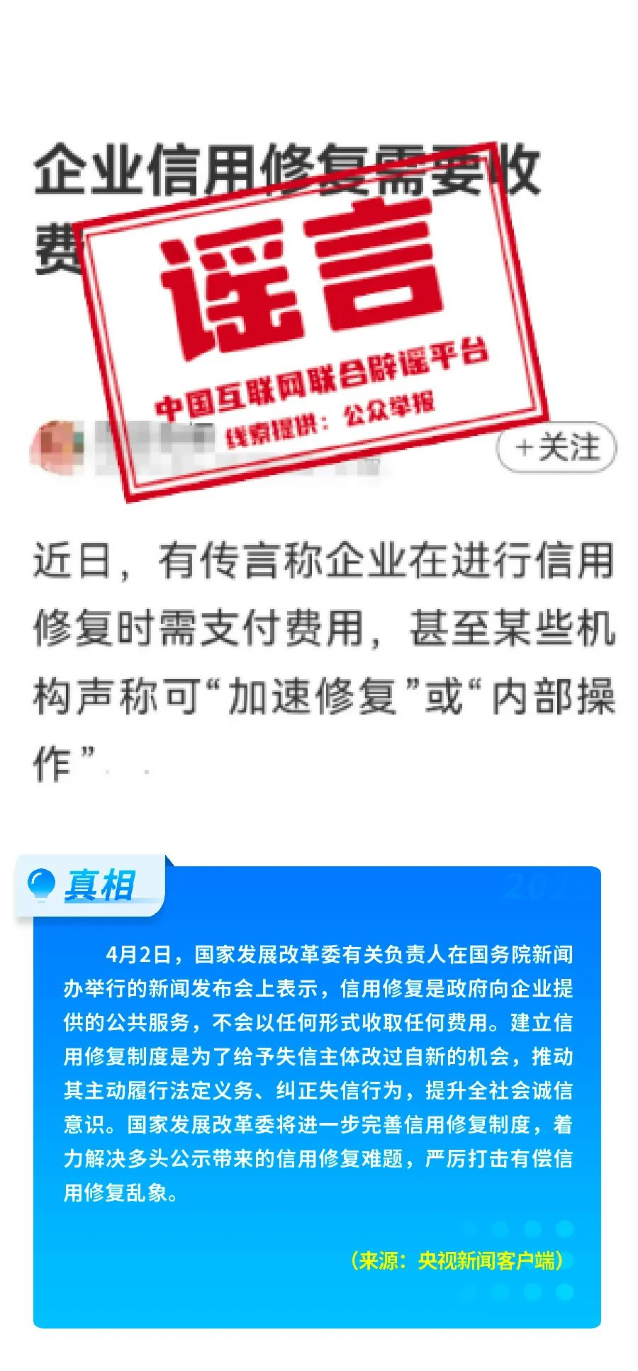 伪造公共政策,误导公众认知。4月,个别不法分子假冒官方名义,伪造散布各类公共政策。如“粤港澳两地牌全面取消”,故意曲解政策优化措施,将“取消关联核查纳税、延长指标有效期”等便利化调整篡改为“全面取消”。还有不法分子利用企业修复信用的迫切心理,通过编造“内部操作”的话术,散布“企业信用修复需付费”的虚假政策。此类谣言利用信息的不对称,或诱导付费、或挑拨矛盾,严重消耗公共资源。