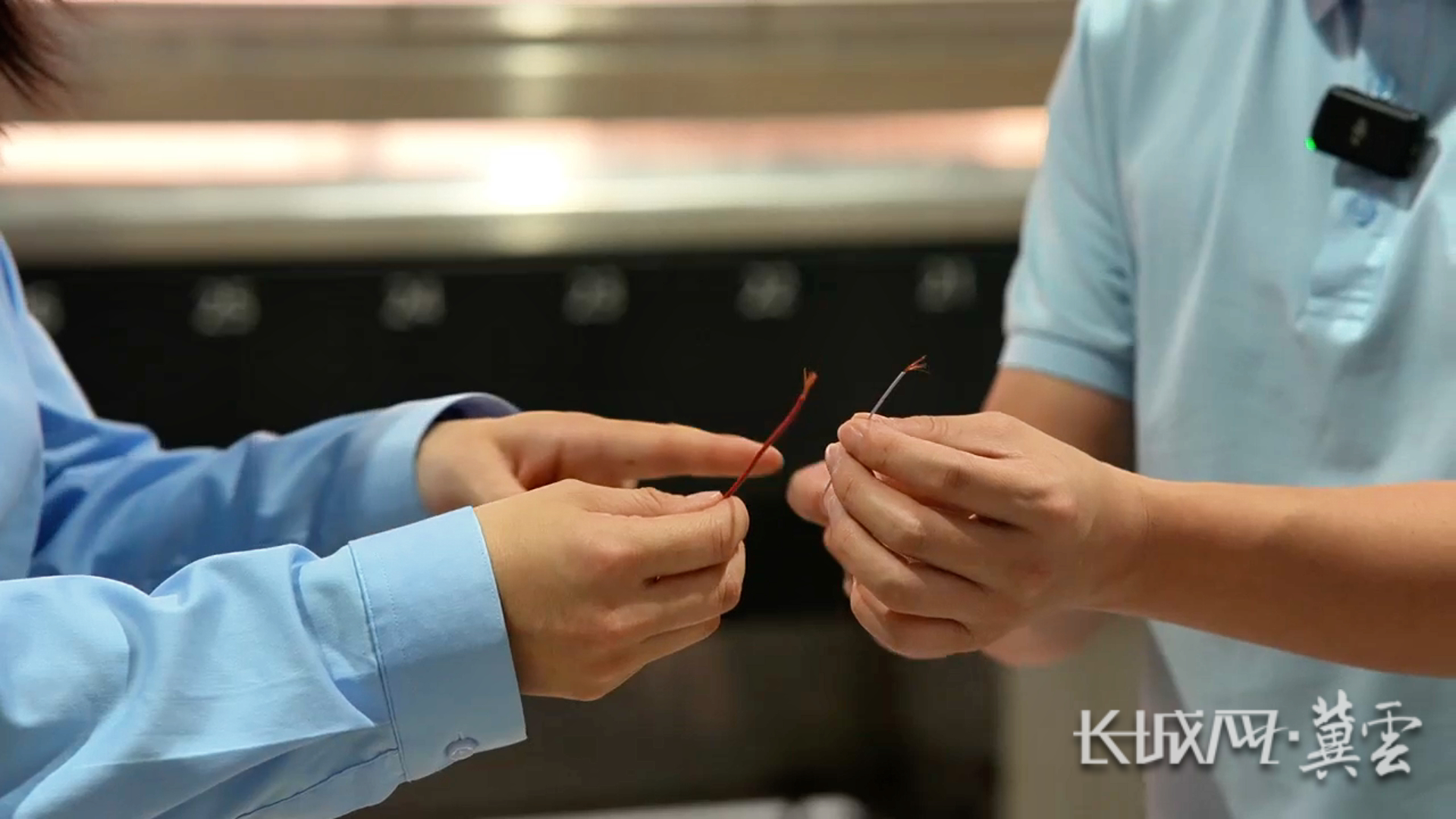 “这根导线的截面积只有0.13平方毫米,里面有7根头发丝一样细的导线,它们组成的线束比传统线束轻了20%,稳定性也更好。”