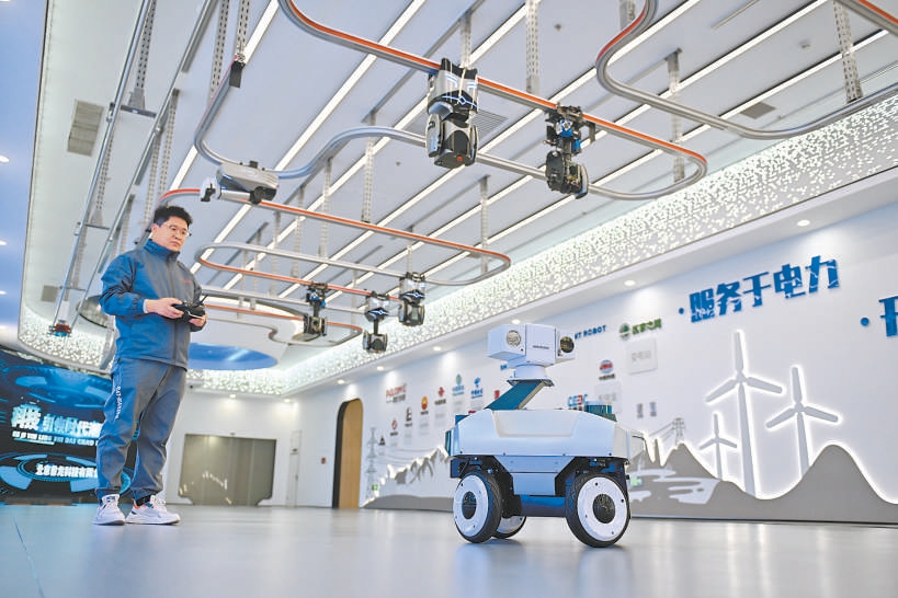 在雄安新区科创中心中试基地,工作人员在调试巡检机器人。 新华社发