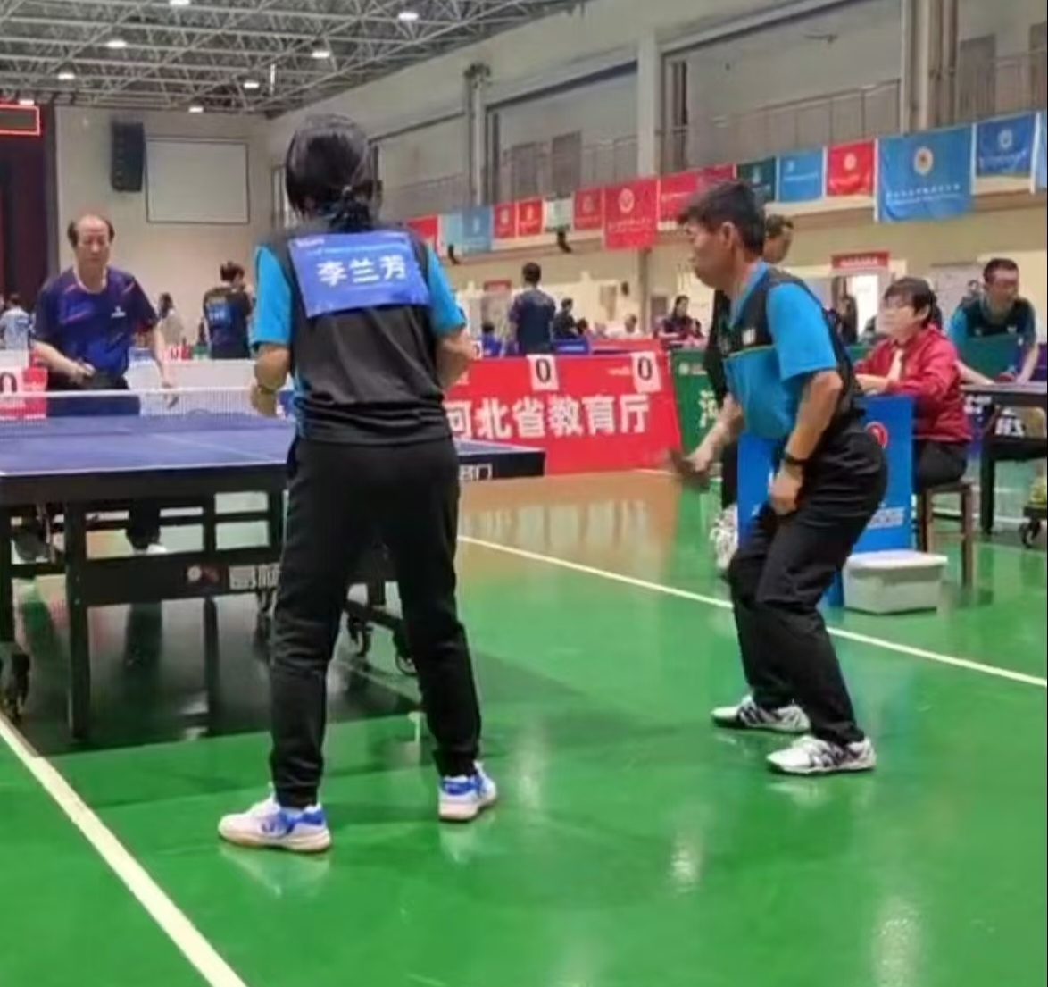 衡水健康科技职业学院代表队由副院长贾九峰带队,刘兵、杨毅、李兰芳、付炳芳组成“精锐之师”。乒乓球团体赛中,面对多支传统强队,队员们以“每球必争、永不言弃”的拼劲突出重围:男双组合刘兵、杨毅在对阵中央司法警官学院的决胜局中,连救三个赛点逆转胜局;女单选手李兰芳更是化身“黑马”,首轮以三个3:0强势横扫对手,八强战中直面曾获全国高校女单亚军的曾小滨,以精准落点与凌厉攻势直落三局锁定胜局,其亮眼表现成为赛场焦点。