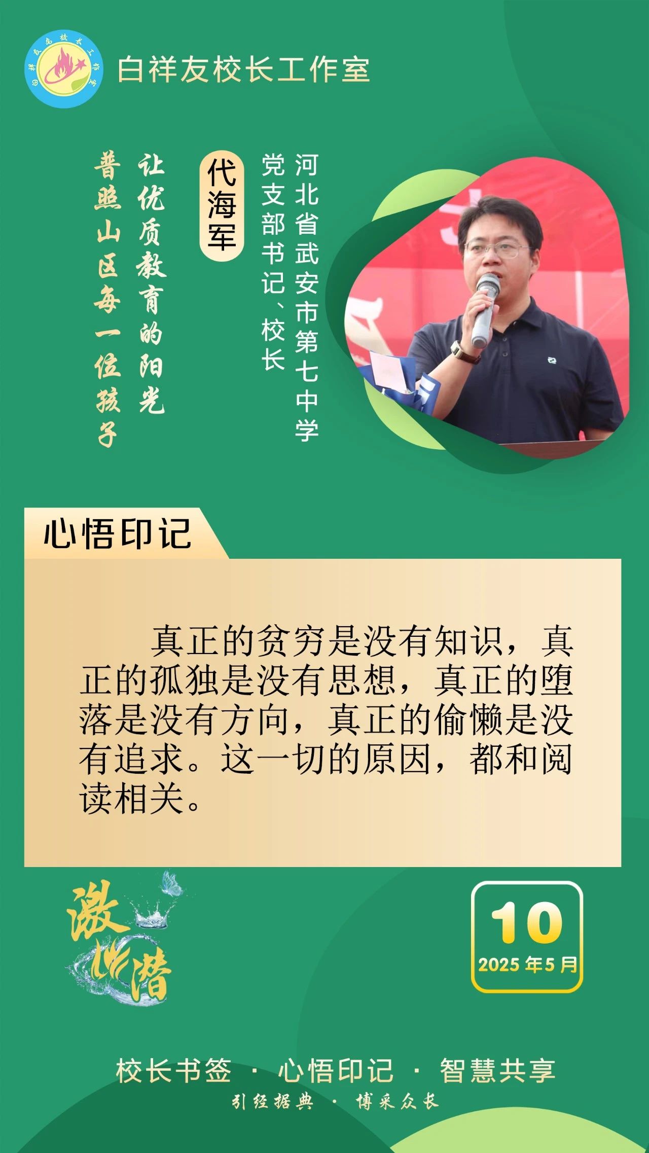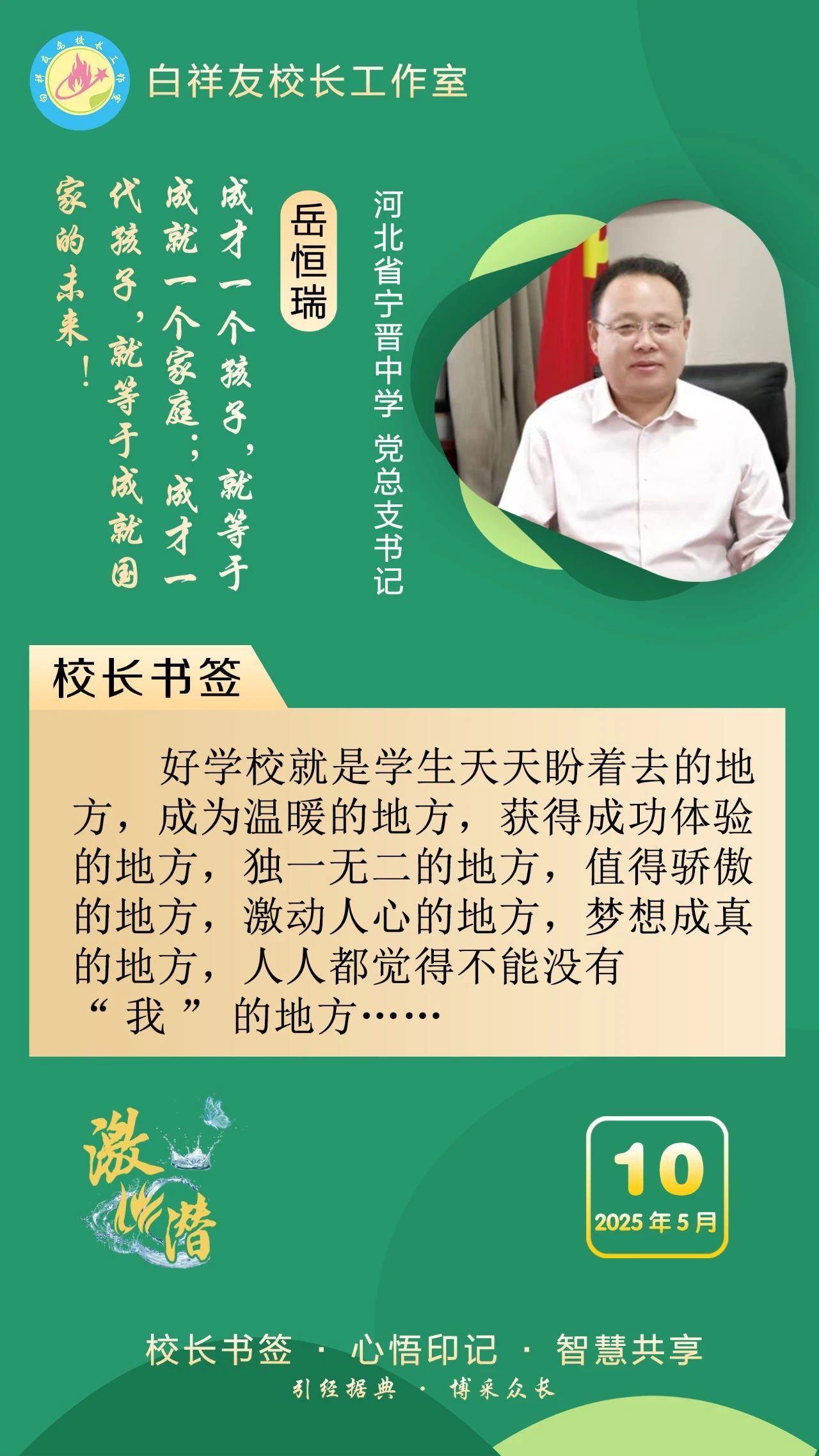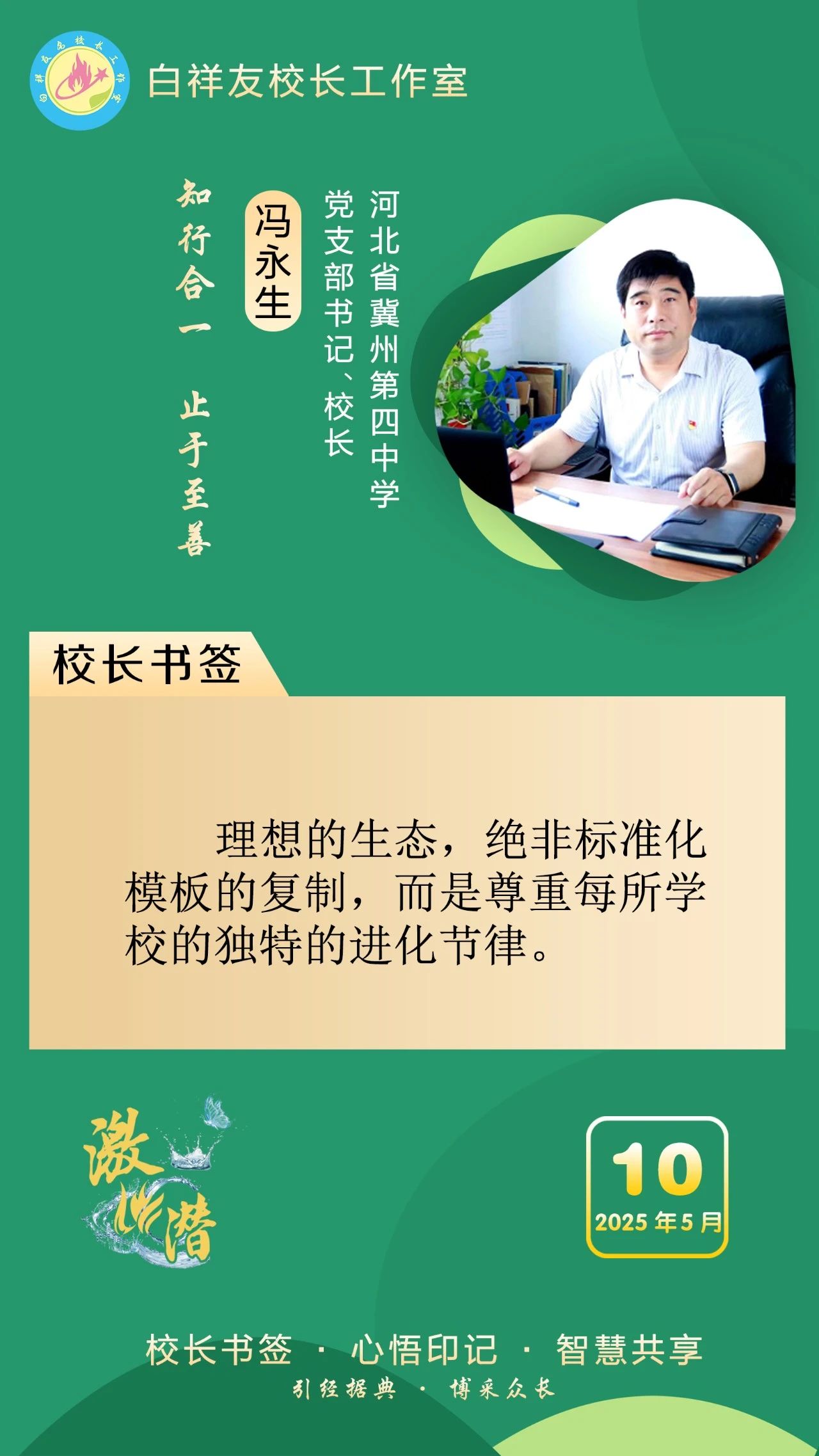 “白祥友校长工作室”成立于2019年4月,是教育部“国培计划”中小学名校长领航工程、河北省首批名校长工作室,目前省内外成员校59所。工作室坚持“资源共享、智慧共融、互助共赢”理念,已成为思想碰撞的交流场,资源共享的品牌站,成果展示的辐射源。