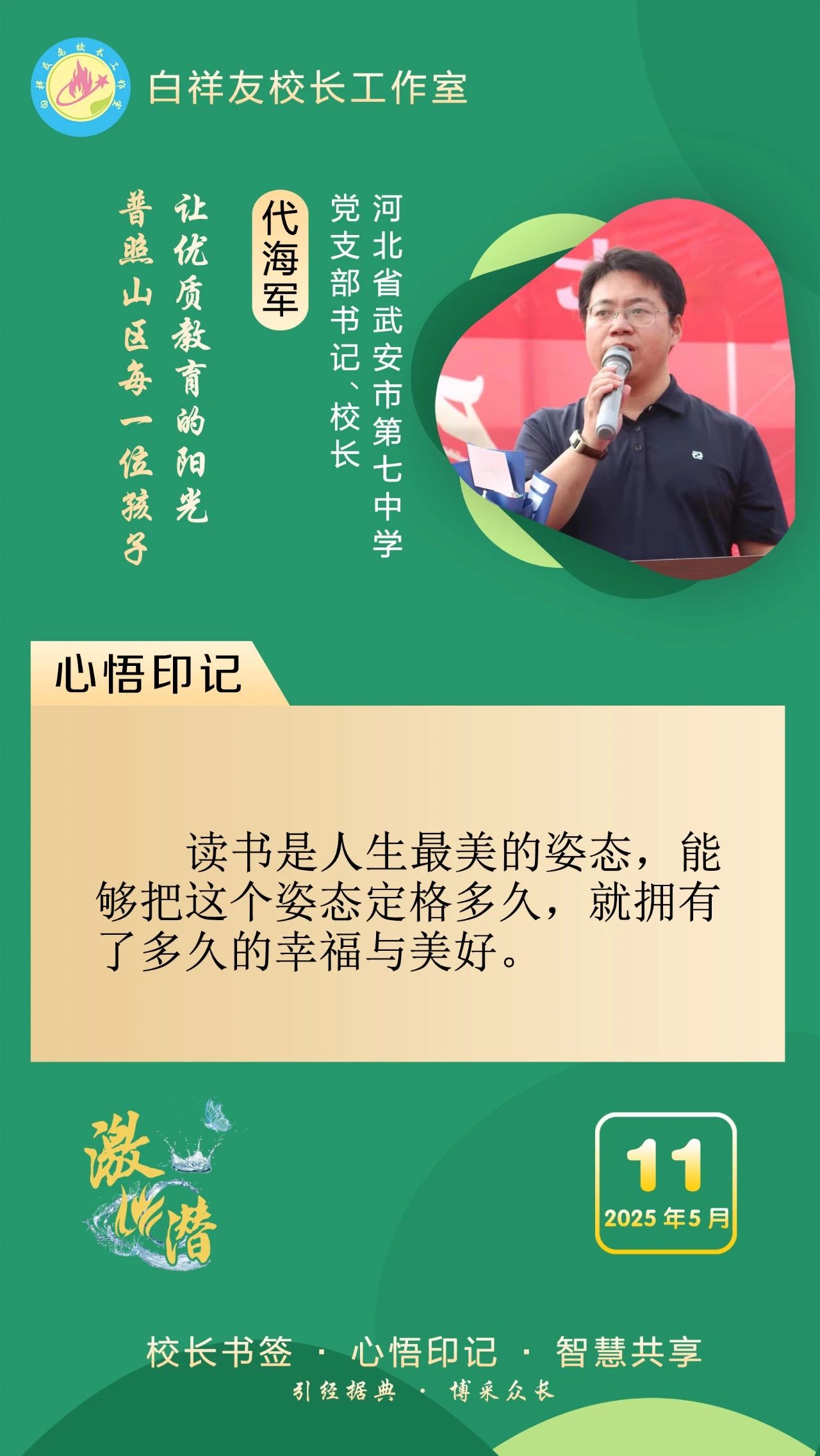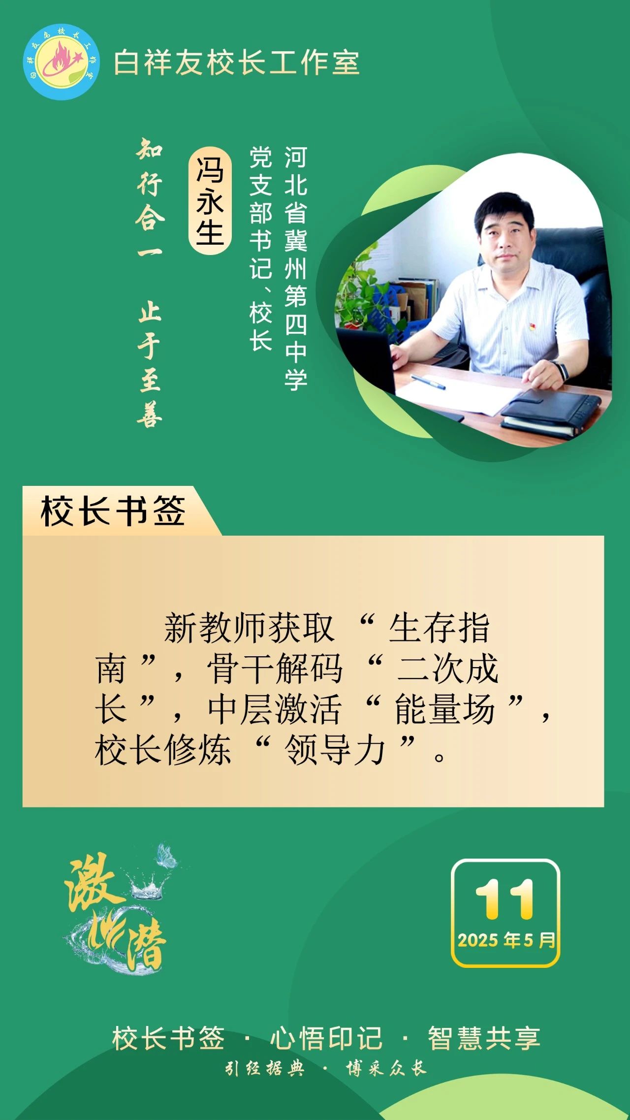“白祥友校长工作室”成立于2019年4月,是教育部“国培计划”中小学名校长领航工程、河北省首批名校长工作室,目前省内外成员校59所。工作室坚持“资源共享、智慧共融、互助共赢”理念,已成为思想碰撞的交流场,资源共享的品牌站,成果展示的辐射源。