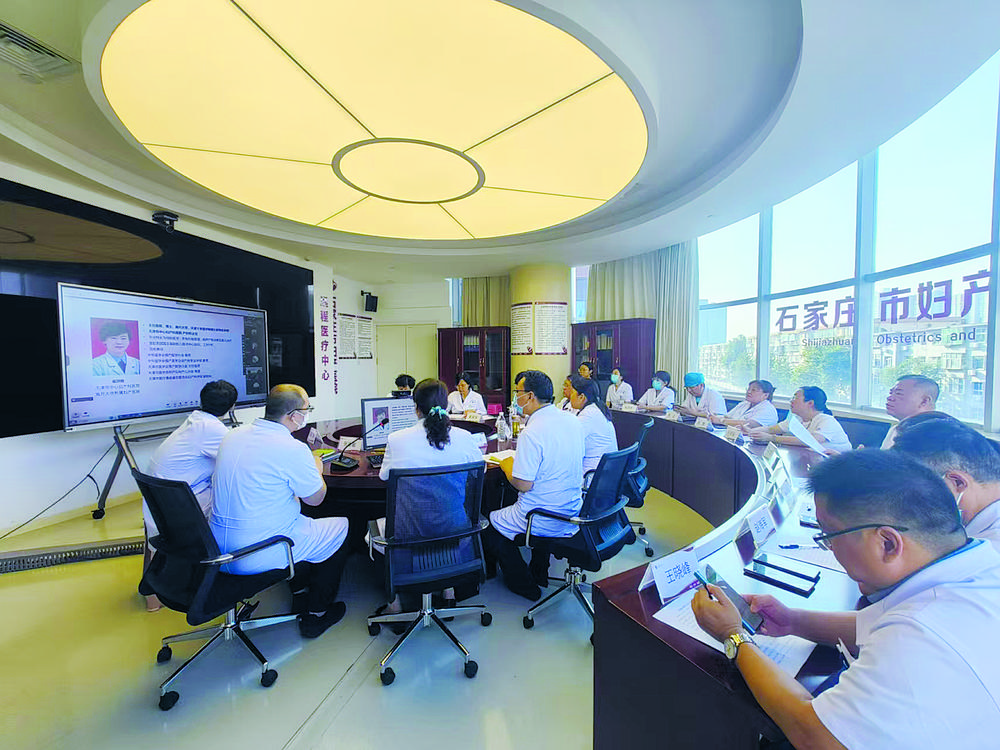 在远程医疗中心,石家庄市第四医院的医护团队与天津中心妇产科医院专家开展远程会诊。