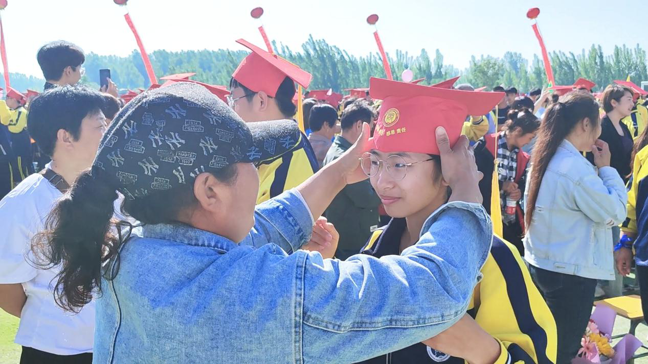 晨光熹微中,校园被装点得焕然一新,处处洋溢着青春的气息,家长们手捧鲜花盛装出席。