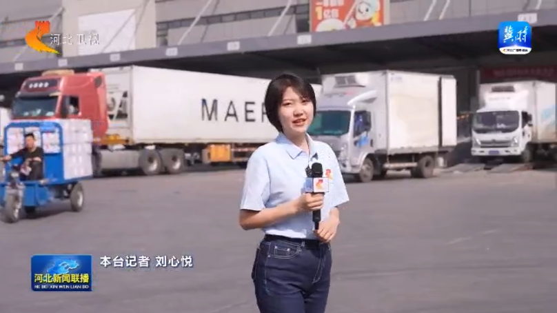 我现在呢就来到了位于保定高碑店的首衡智慧冷链物流园,可以看到,在我身后工人们正忙着将各种肉类、海鲜等农产品运上冷链物流车。在不久后,这些货物就将被搬运到京津冀以及周边十几个省份百姓的餐桌。
