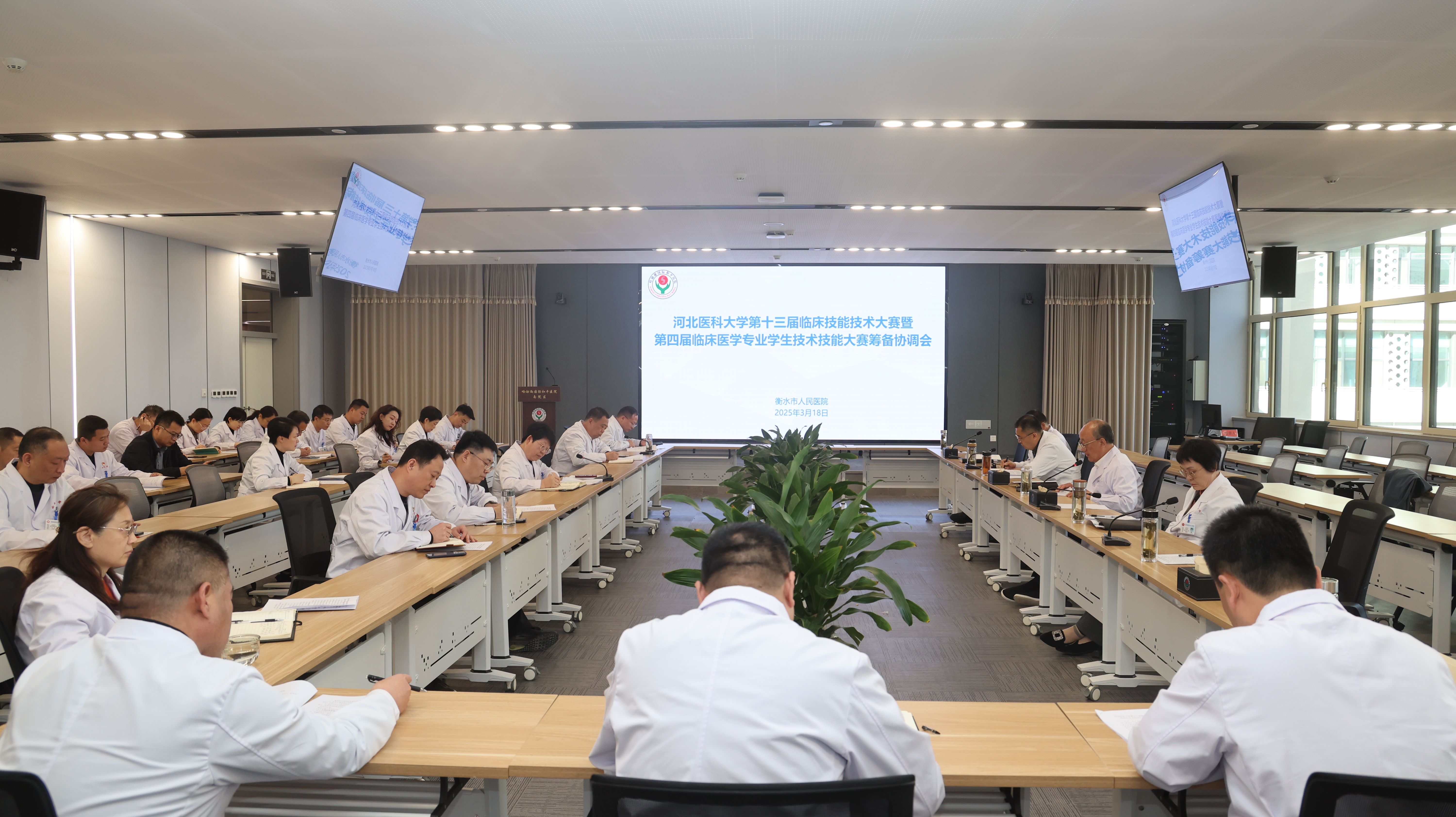 衡水市人民医院(哈励逊国际和平医院)党委提前周密部署安排,确保河北医科大学第十三届临床技术技能大赛暨第四届临床医学专业学生技术技能大赛成功举行。图为3月18日,院党委进行工作调度。