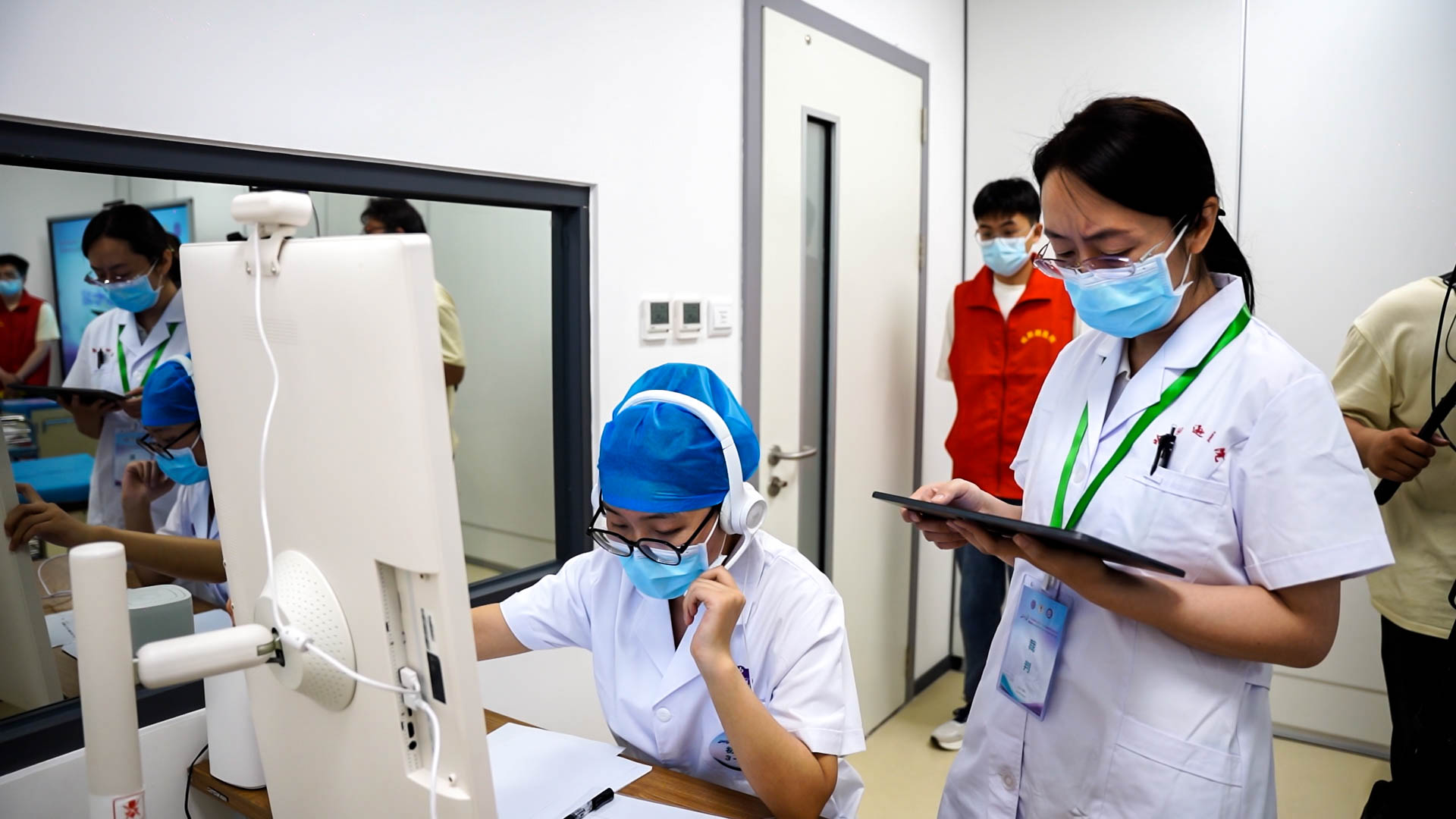 山东大学齐鲁医院胰腺外科副主任、临床技能培训中心主任展翰翔担任总裁判长,在考试现场巡考。
