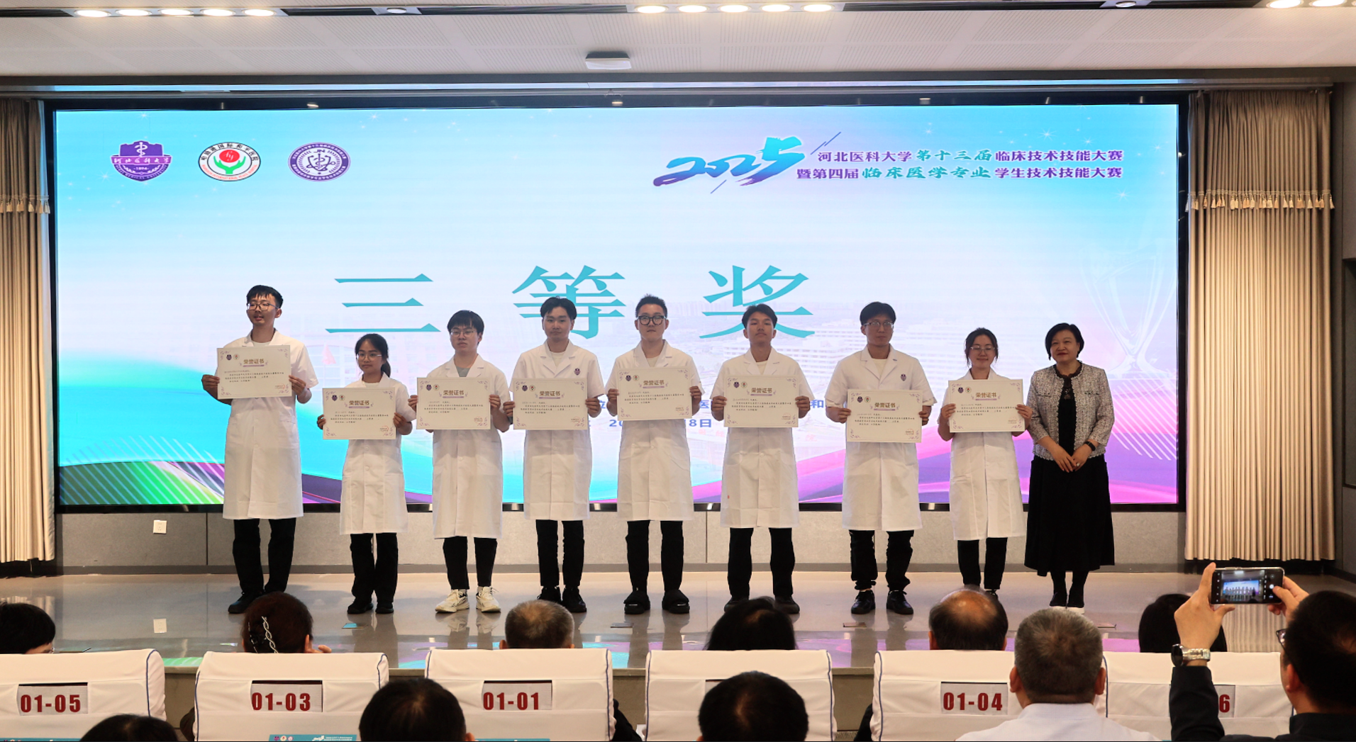 大学生医学技术技能大赛是培养医学生专业知识、实践技能、人文素养、创新意识、合作精神等综合能力的重要舞台,是大学附属医院、教学医院之间展示临床教学成果和交流教学经验的重要平台,还是推动院校医学教育改革、打造临床医学教育教学示范工程的重要举措,广受重视。5月8日,由河北医科大学主办、衡水市人民医院(哈励逊国际和平医院)承办的第十三届临床技术技能大赛暨第四届临床医学专业学生技术技能大赛在哈院南院区举行。经过激烈角逐,由段建广、和东亮、孟瑶瑶、魏和煦组成的衡水市人民医院代表队,与河北医科大学第二医院代表队,获得此次大赛的特等奖。这是衡水市人民医院代表队在继去年荣获一等奖后,再获佳绩。