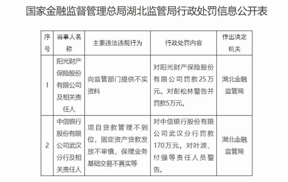 针对湖北监管局此次处罚,阳光财险对外披露称,未对材料真实性认真审核把关,存在报送不实任职资格申请材料的行为。