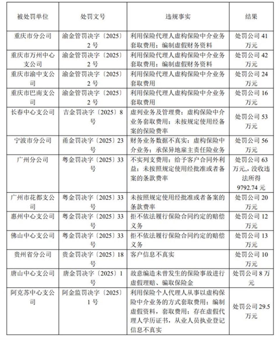 阳光财险保险公司偿付能力2025年1季度报告摘要显示,除了最近一次被湖北监管局处罚,报告期内还有其余13次违规被罚,涉及违规行为包括利用保险代理人虚构保险中介业务套取费用;编制虚假财务资料;财务业务数据不真实;虚构保险中介业务;承保异地雇主责任险业务;拒不依法履行保险合同约定的赔偿义务等。