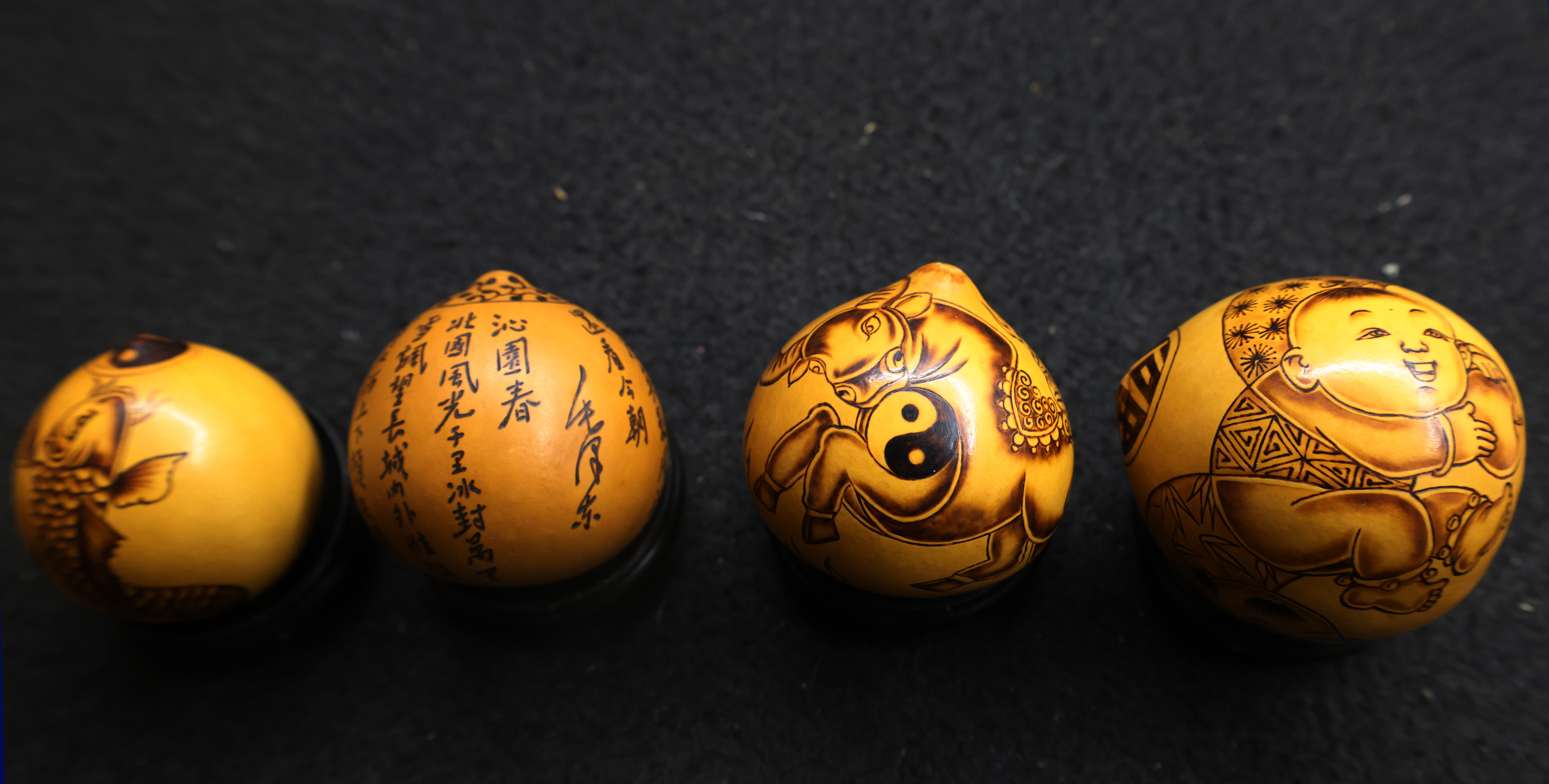 一次偶然的机会,何胜旺又接触到甘肃的“鸡蛋葫芦”。这种小巧玲珑的葫芦,让他看到了非遗与现代文创结合的可能。他将传统元素与现代审美相融合,创作出一系列便于携带的文创作品。生肖葫芦、吉祥图案葫芦……作品一经推出,便受到市场热捧。