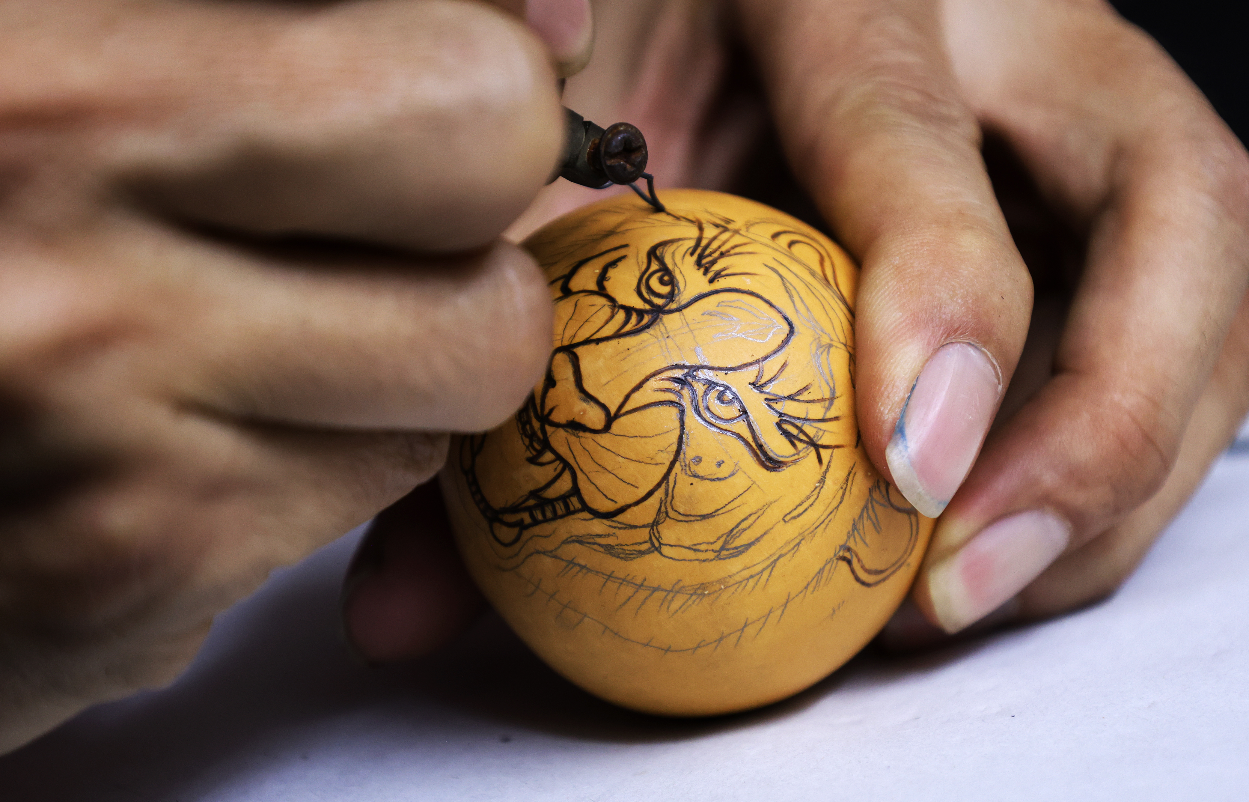 在冀州区一间飘着淡淡木头焦香的工作室里,44岁的何胜旺正手握电烙笔,在拳头大小的葫芦上“舞火成画”。笔尖与葫芦表面接触的瞬间,焦黄色的线条如灵蛇游走,片刻后,一只威风凛凛的虎头便跃然“浮”于曲面——这不是普通的手工艺创作,而是一场跨越千年的“火焰对话”。当数字化浪潮席卷而来,何胜旺却以一支烙笔为媒,在焦痕与木纹的交响中,让沉睡千年的葫芦烙画重新焕发生机。