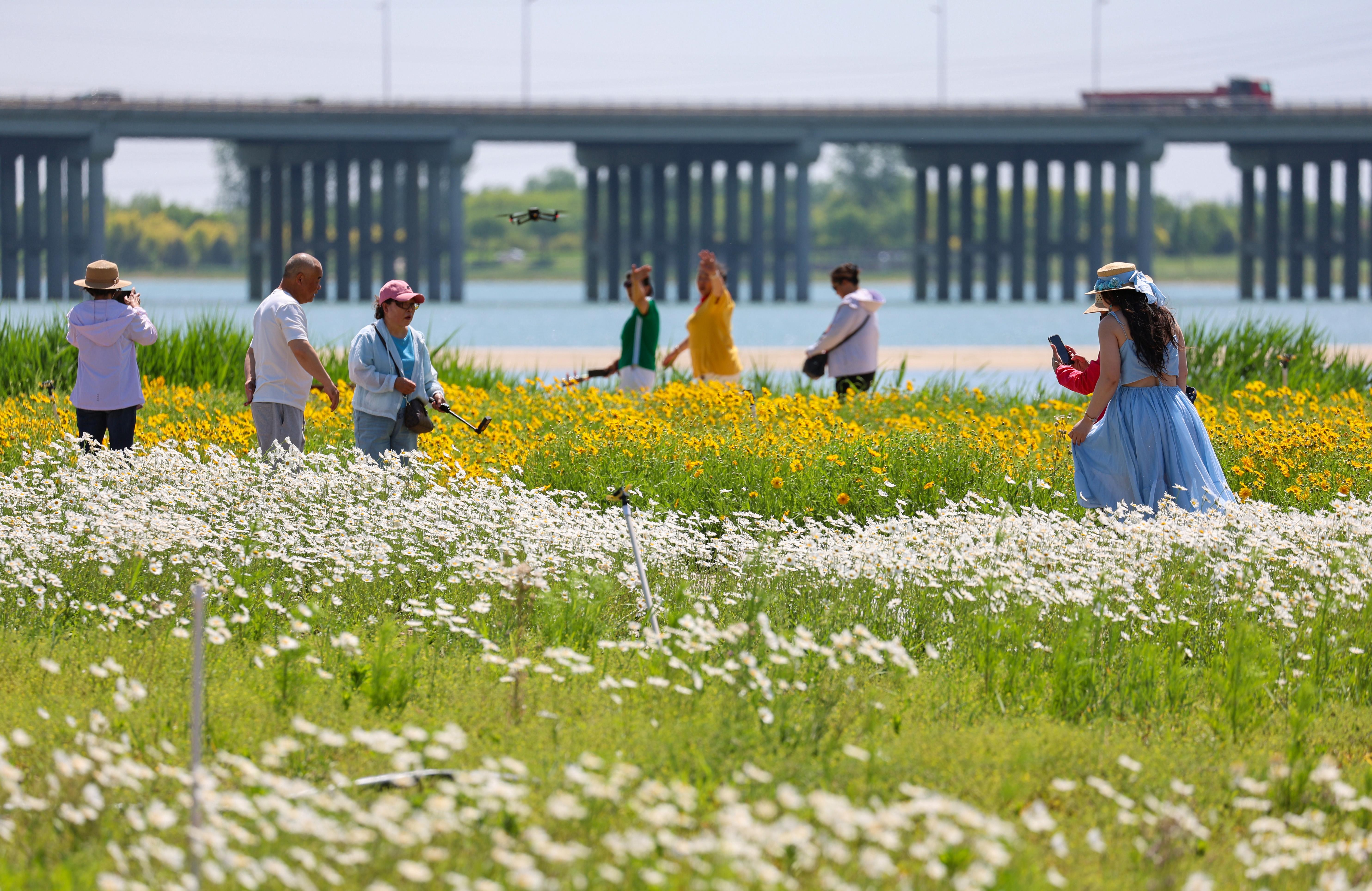 家住长安区的李大爷和老友一边欣赏滹沱河的风景,一边悠闲地吹着长笛。“滹沱河畔如今增添了这么多景观,满眼绿树鲜花,太漂亮了。有空来这里散散步、看看景,吹吹曲子,心情也舒爽。”顺着李大爷手指的方向记者看到,滹沱河面水清如镜,蓝天白云倒映在水中,两岸绿意盎然,而点缀其间的花海更是为这片土地增添了无尽的生机与活力。随着一系列景观提升工程的推进,滹沱河生态区(城区段)正以全新姿态,为市民游客带来“步步皆景、处处见绿”的生态新体验。