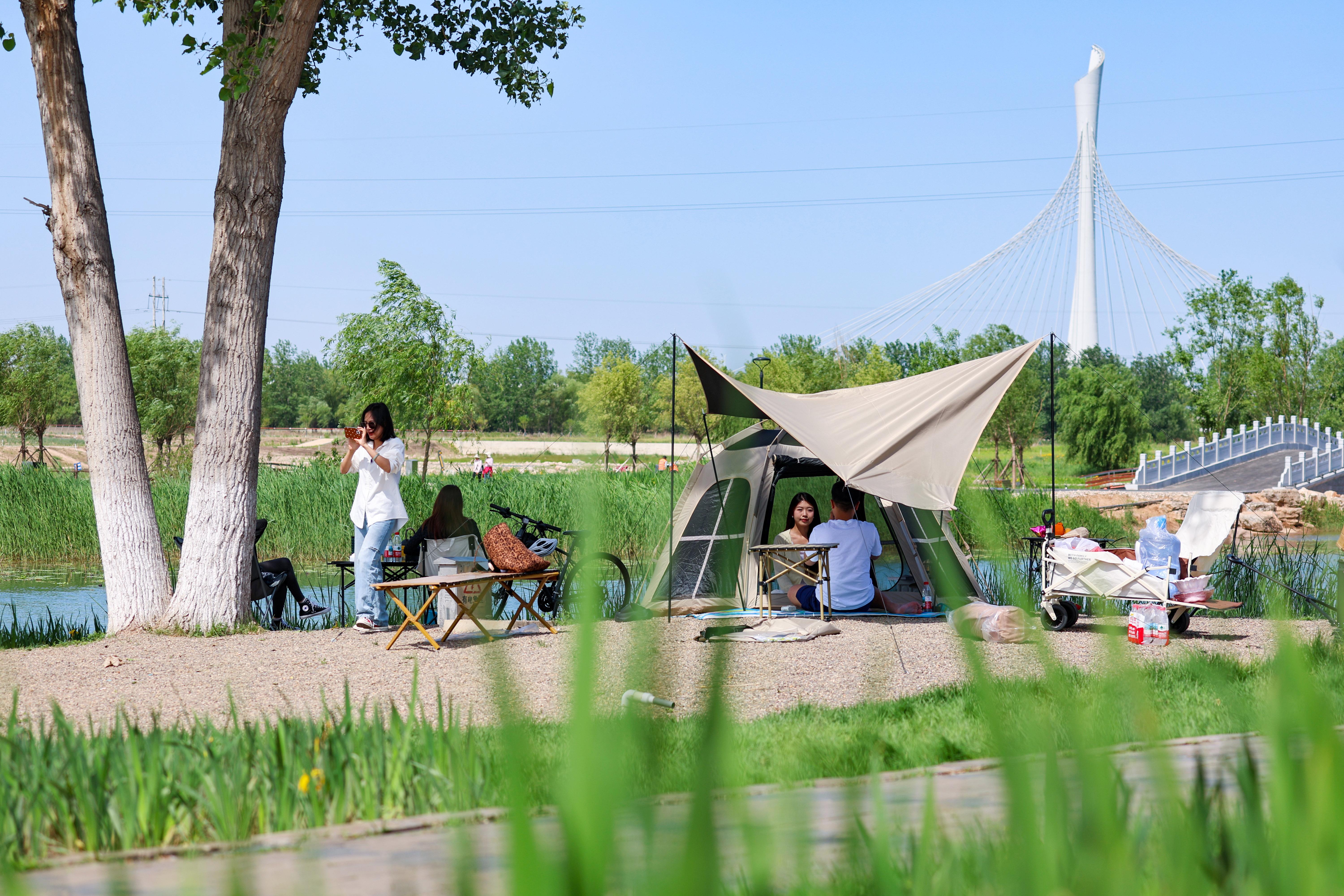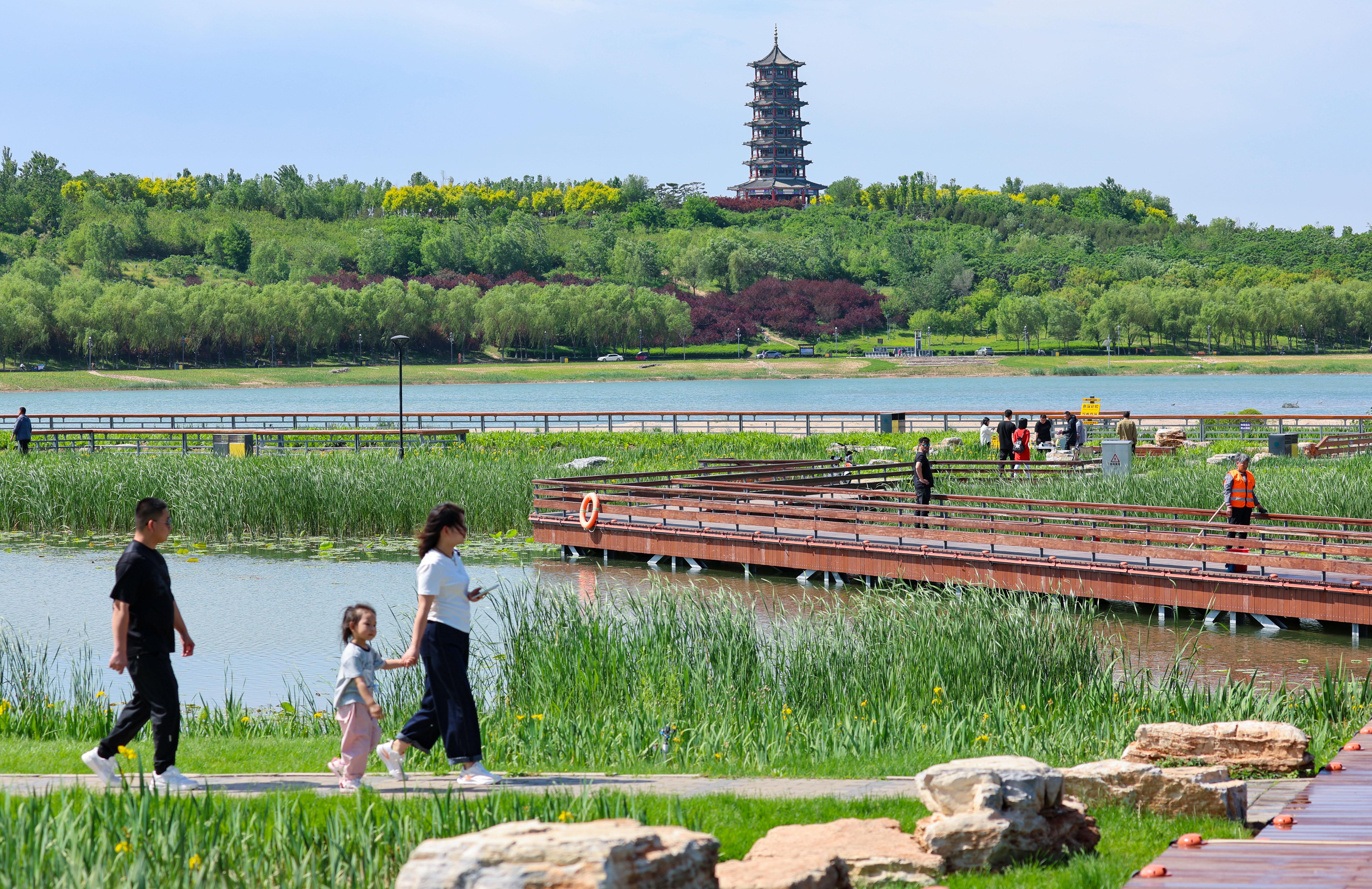 在滹沱河畔,随处可见市民游客漫步、孩童兴奋跳跃的光影,老人们对着河面粼粼波光频频点头,全方位领略滹沱河的独特魅力。