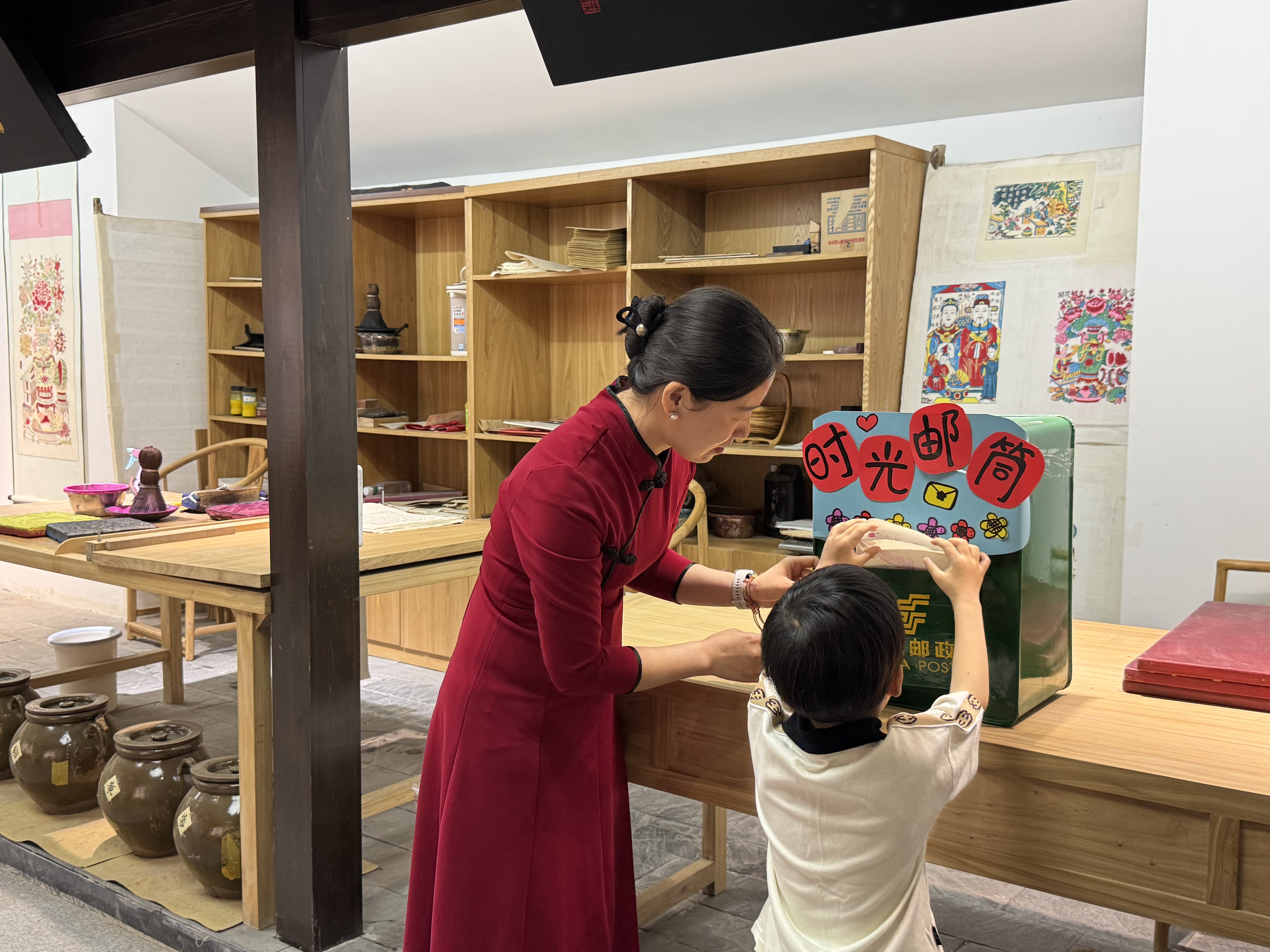 “非遗手作体验”最受青睐。年画印刷环节,孩子们认真聆听传承人讲述武强年画印刷时的注意事项,印刷一张送给自己的年画作品;漆扇制作环节,工作人员准备材料、讲解知识与注意事项,孩子们在其指导下发挥创意,制作出独一无二的精美漆扇,收获满满。在最后的“时空信笺返航”环节中,孩子们通过“未来邮箱”把印刷的年画封存起来,博物馆的“穿越回信”融入未来元素,持续激发孩子对非遗文化的探索兴趣。