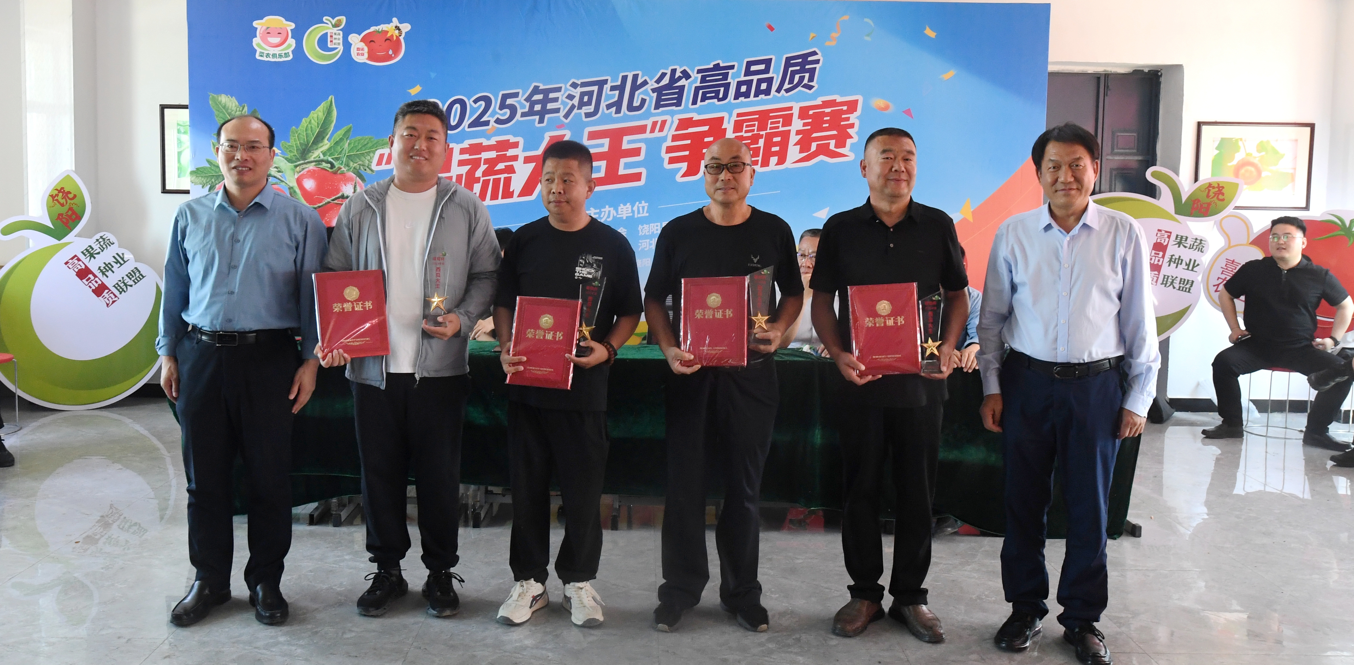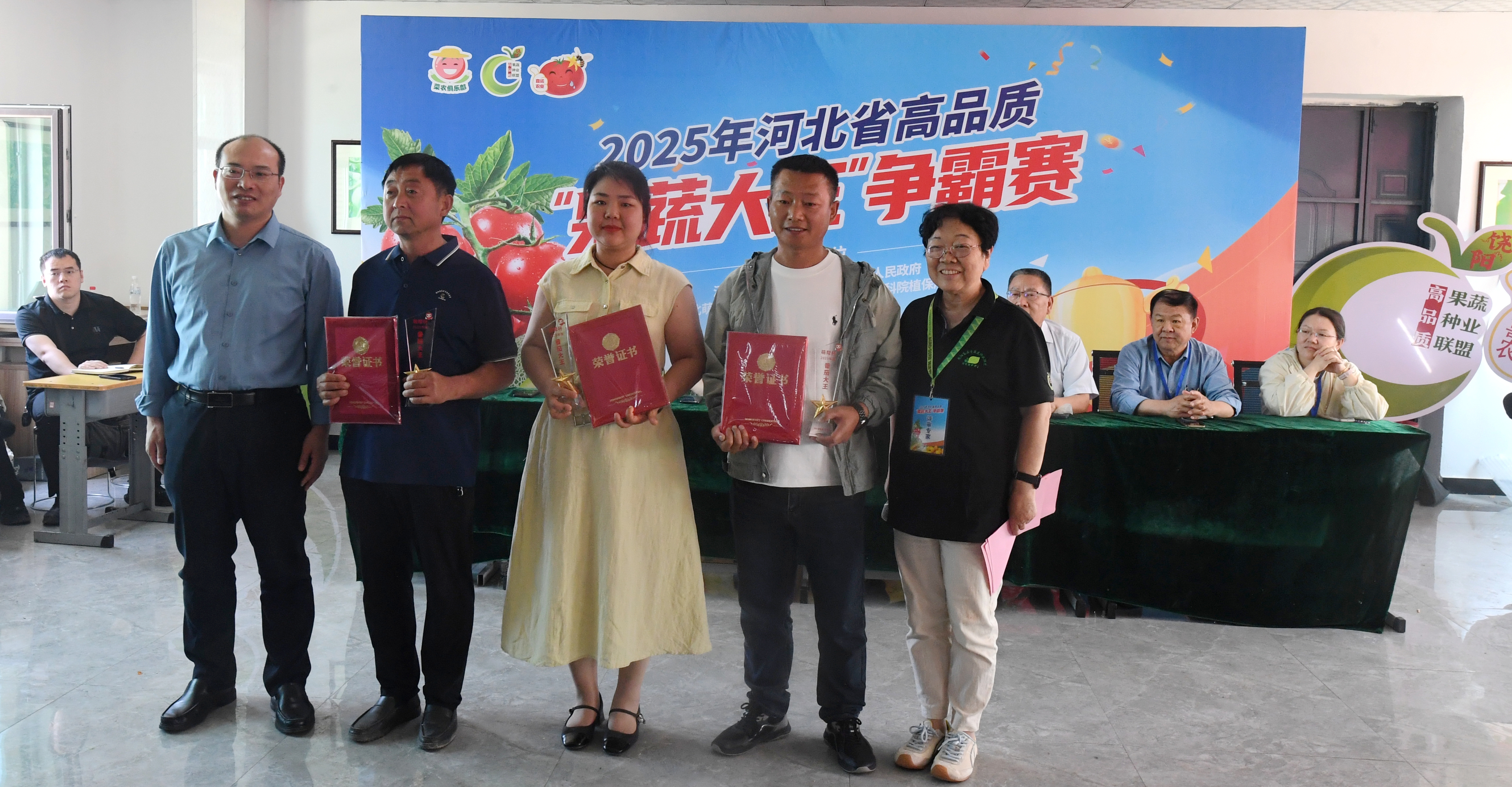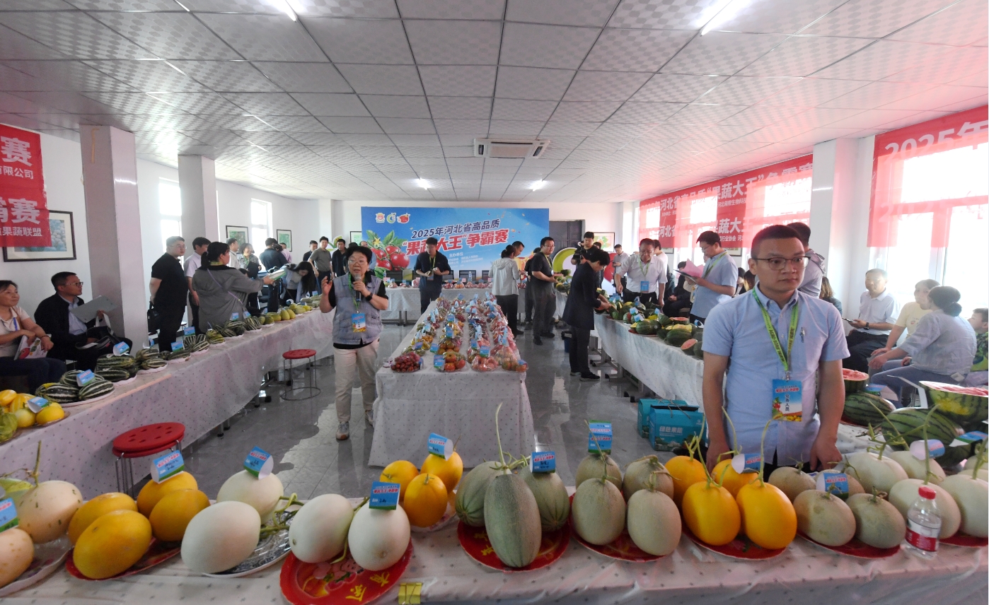 5月17日,由河北省蔬菜行业协会、饶阳县人民政府、河北省农科院植保所联合主办的2025年度河北省高品质“果蔬大王”争霸赛,在饶阳县大尹村镇农技科技服务中心激烈开赛。全省210余份优质果蔬产品同台竞技,围绕西瓜、番茄、甜瓜三大品类展开巅峰对决,全方位展现河北现代农业科技与绿色生产的创新成果。