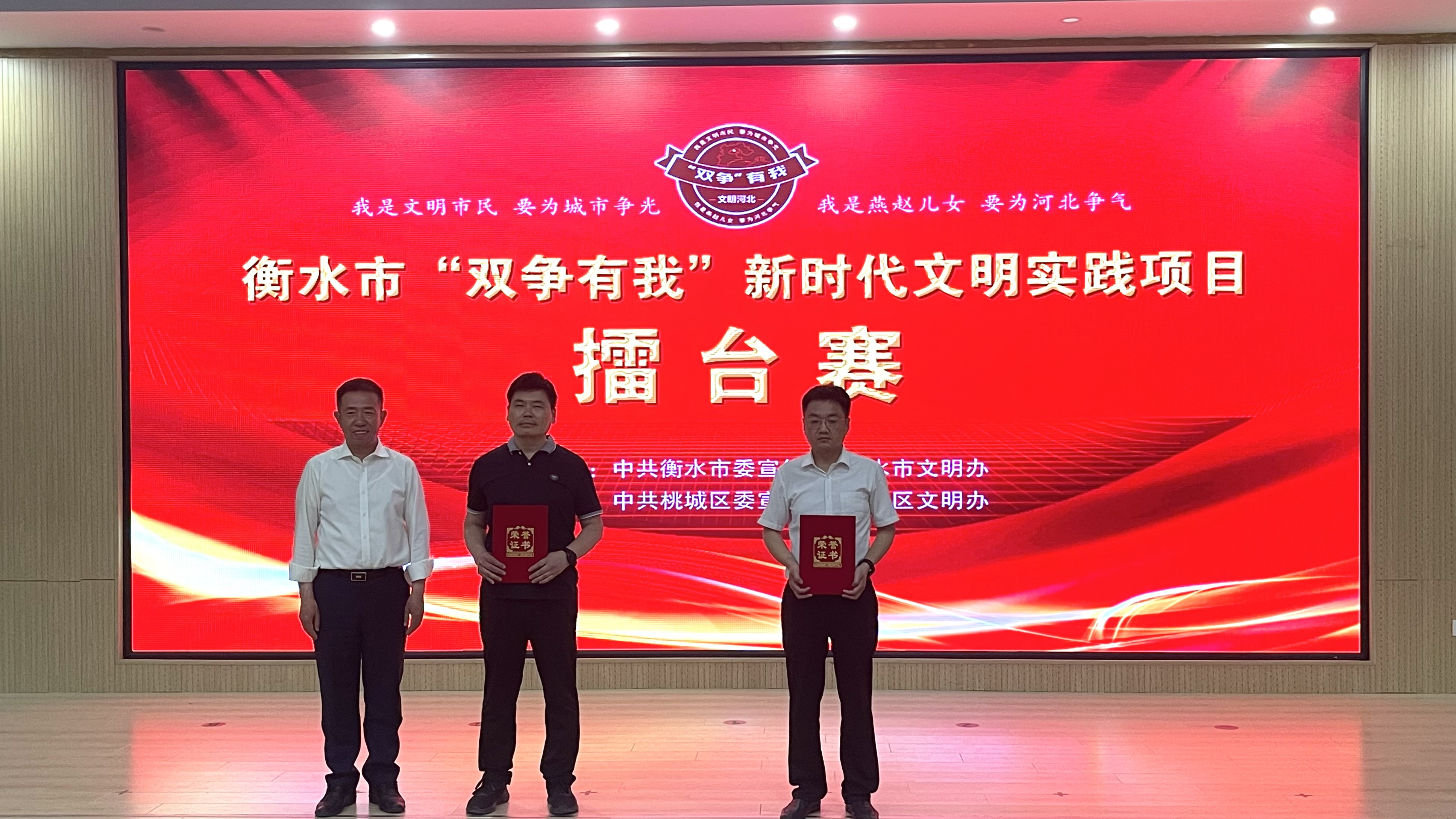 本报讯(记者杜俊颖)5月16日下午,由市委宣传部、市文明办主办的衡水市“双争有我”新时代文明实践项目擂台赛在桃城区新时代文明实践中心举行。全市各县市区推选出的11个文明实践项目同台竞技,尽展风采,在互学共鉴中推动我市新时代文明实践中心建设工作迈上新台阶。
