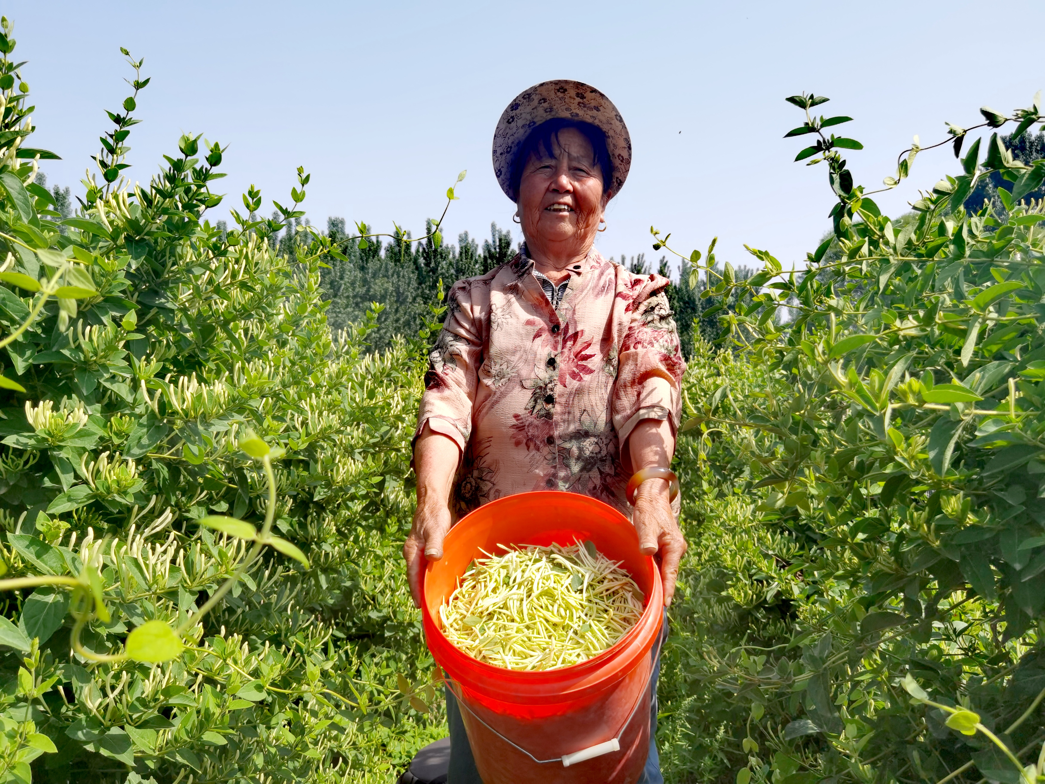 5月19日,走进深州市乔屯乡乔家寺村,连片的金银花田宛如绿色锦缎铺展在大地上,一簇簇黄白相间的金银花缀满枝头,村民们穿梭其间,指尖翻飞采摘花蕾,欢声笑语中洋溢着丰收的喜悦。