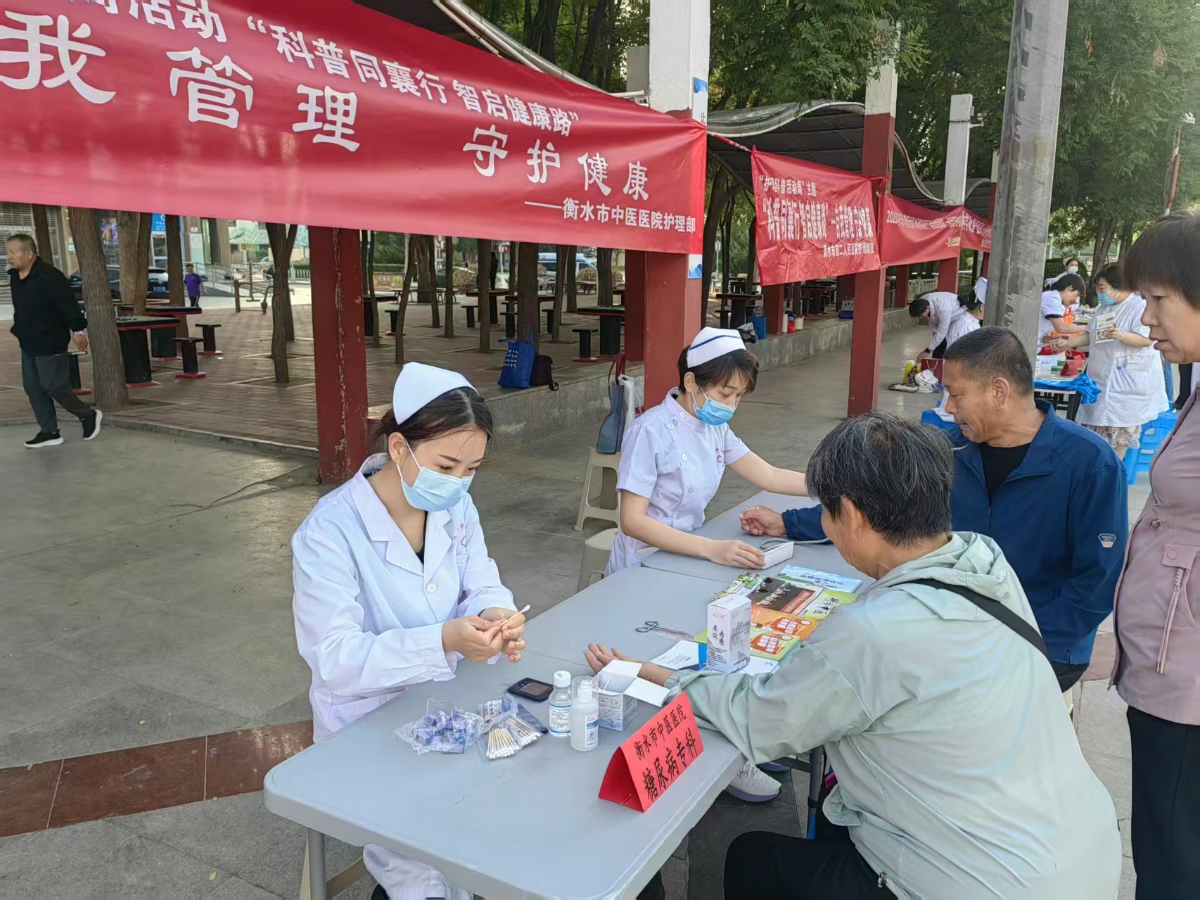 在活动现场,重点围绕急救科普、疾病预防、慢病管理、康复指导、中医养生、心理健康、睡眠管理等领域,医护工作者以知识赋能健康,用科学守护生命,更好助力全民健康素养。衡水市护理学会理事长李彬,副理事长梁平,常务理事林灵芝、康静、周金艳、吴丹、王静、高艳、纪彦华等,也积极参与进来,为群众进行精彩科普讲解,让现场氛围格外热烈。