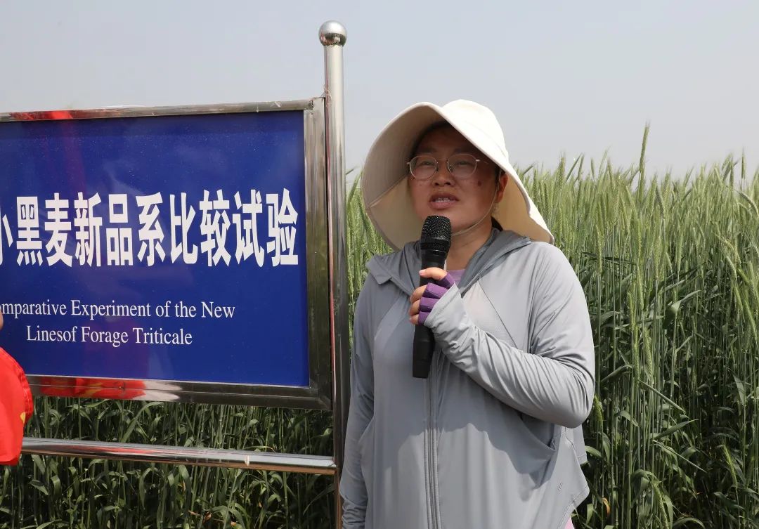 在饲用小黑麦新品比较试验田里,副研究员武瑞鑫的科普讲解同样精彩。她以专业视角剖析了小黑麦与黑麦的种间差异,着重强调了小黑麦在抗寒、抗旱、耐盐碱等方面的优势。此外,她还详细阐述了小黑麦在饲料加工中提升营养价值、在生态修复中助力土壤改良等方面的广阔应用前景,让在场师生收获满满。