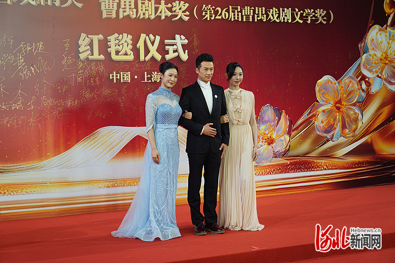 孙娜(左一)参加颁奖晚会走红毯。马会波摄