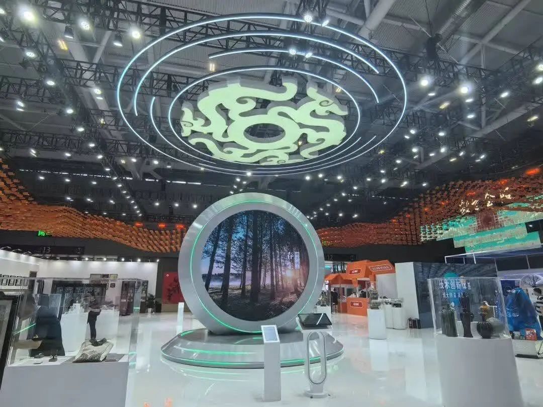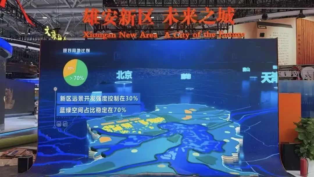 【L型悬挂瀑布屏】展现“雄安新区 未来之城”发展的L型悬挂瀑布屏采用立体3D视角,呈现着雄安新区在承接北京非首都功能疏解、建设生态宜居绿色之城、汇聚中外智慧打造创新之城、引领潮流构建数字智慧之城等领域的高质量高标准建设成果,生动诠释雄安在承接疏解、开发建设、科技创新、城市治理、生态保护等方面的独特魅力。
