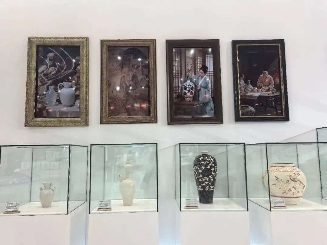 【燕赵书房】燕赵书房让非遗深入生活肌理。书房目光所及之处,名窑瓷器、笔墨纸砚、画作书卷均来自我省非遗精品,同时悬挂省博馆藏文物《溪山秋兴图》的三维全景动态窗框。