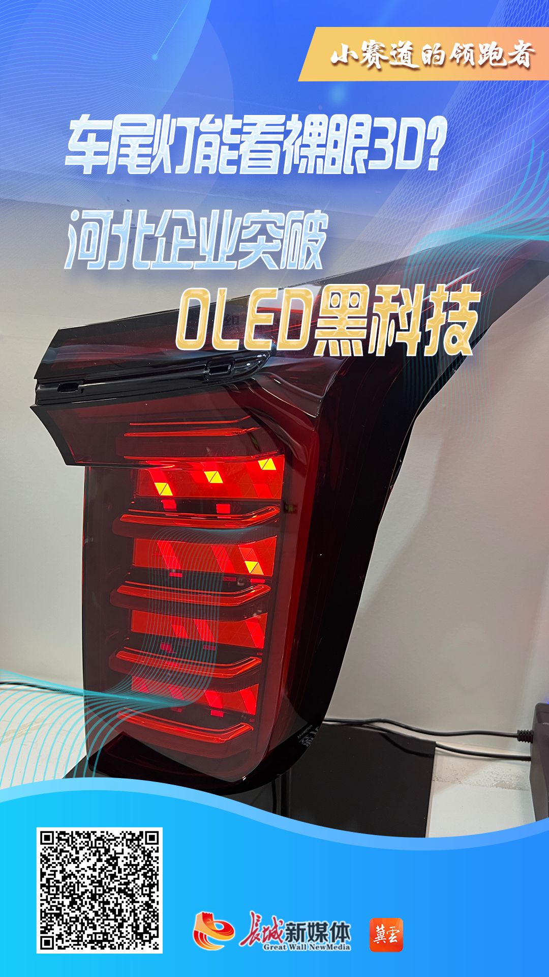 长城网·冀云客户端讯(记者 李代姣 王守一 赵晓慧)一盏汽车尾灯,里面到底藏着多少高科技?在位于河北廊坊的固安翌光科技有限公司,汽车尾灯产品采用了新一代显示技术OLED作为光源,不仅能显示文字、动画,甚至还能呈现裸眼3D效果。