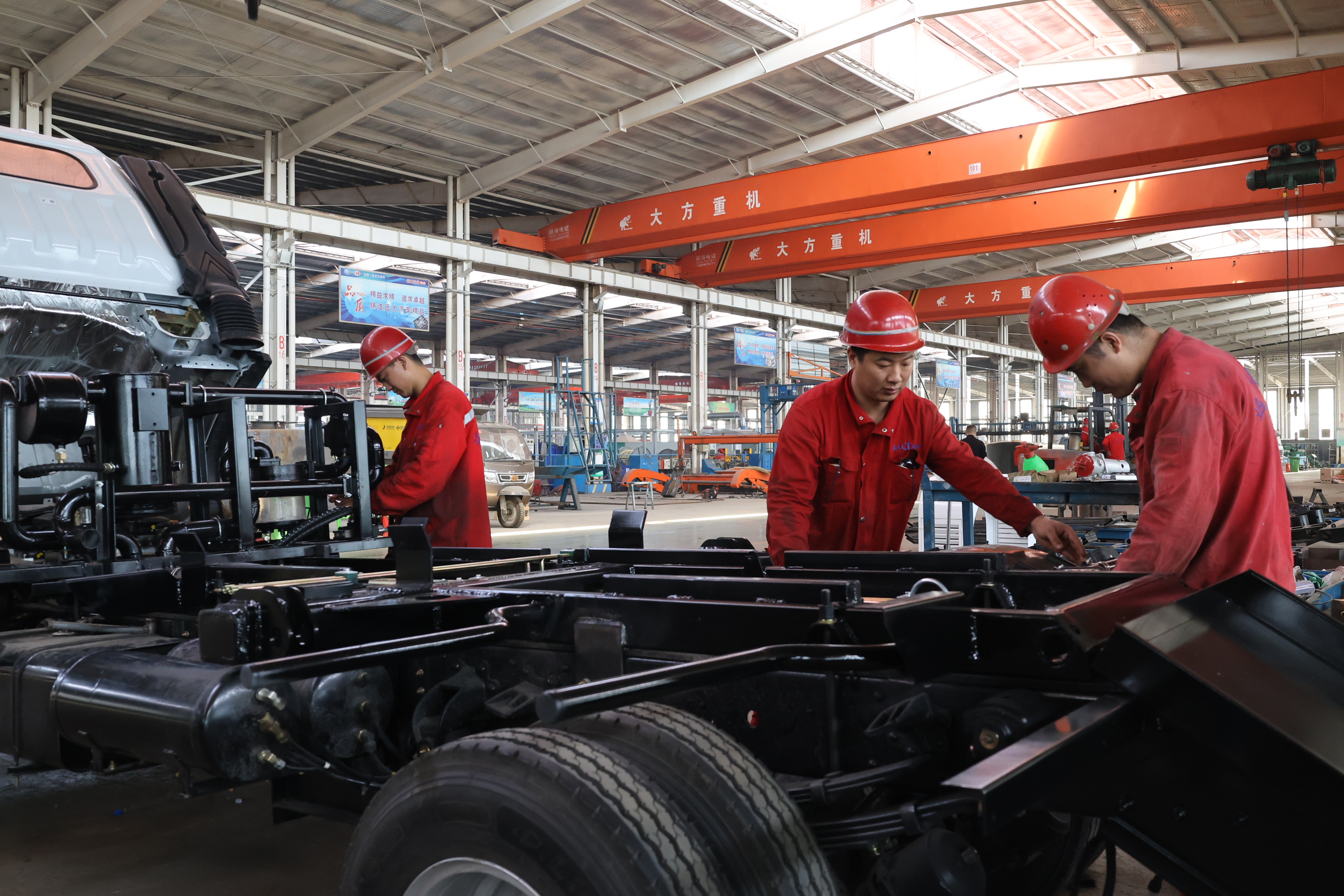 工人正在赶制环卫车订单。 于雁 摄