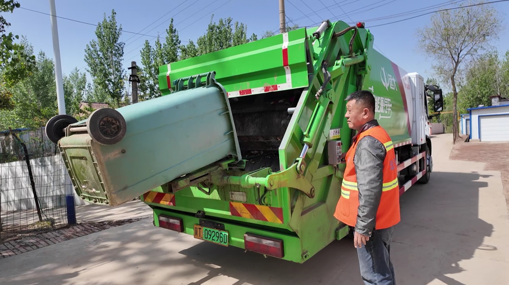 在景县景州镇王关庄村,每天清晨6时许,远大环保的压缩式垃圾车就出现在街道上。司机只需轻点按钮,就可完成提桶、翻桶、卸料、归位等操作,工作效率和操作安全系数大大提高。生活垃圾被集中收集、压缩后,转运至电厂焚烧发电。