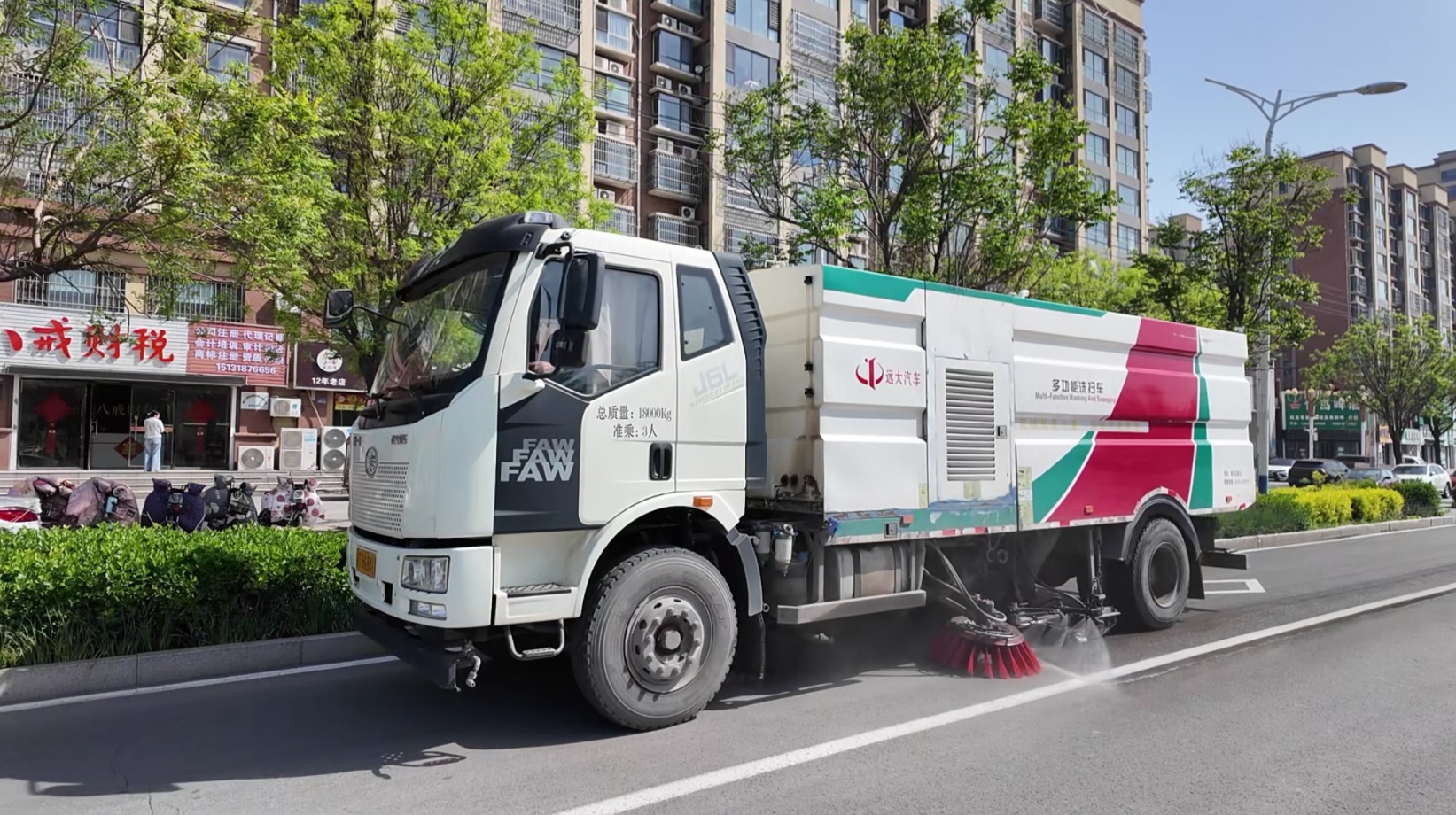 多功能洗扫车进行路面作业。 于雁 摄