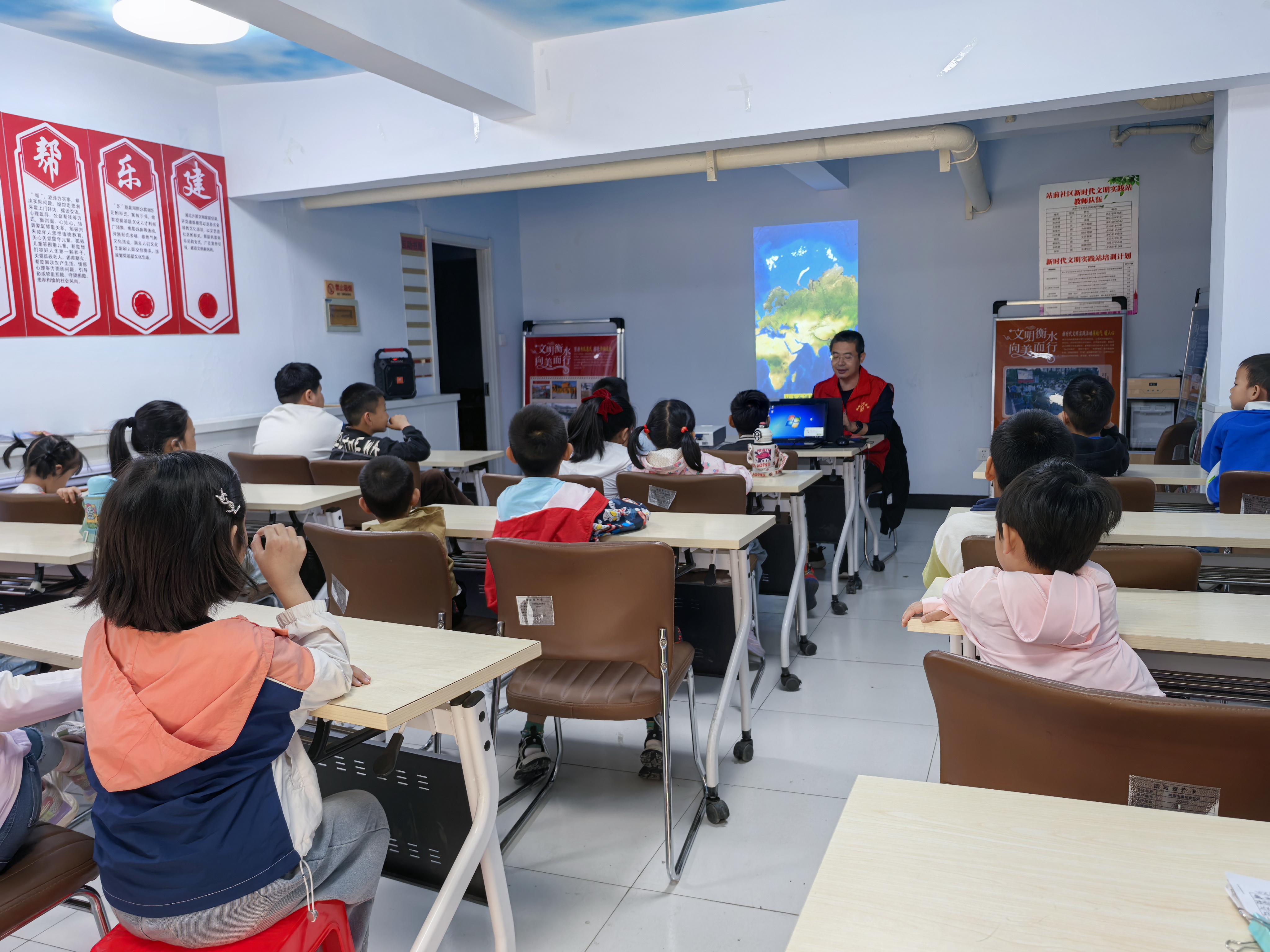 “原来北极航线比传统航线近这么多!”“地图真的会‘骗人’啊!”……5月24日上午,衡水市桃城区河西街道站前社区新时代文明实践站内欢呼声阵阵,包含5名困境儿童在内的20余名儿童,紧盯着屏幕上旋转的地球模型,此起彼伏地感叹着。这是河西街道为辖区困境儿童量身打造的“物质+服务”系列公益项目的第三场活动。