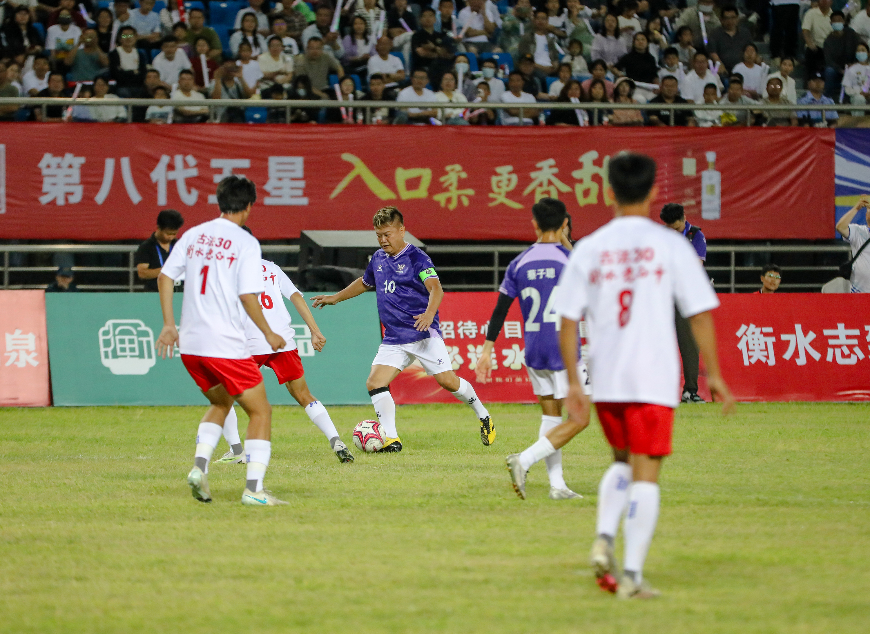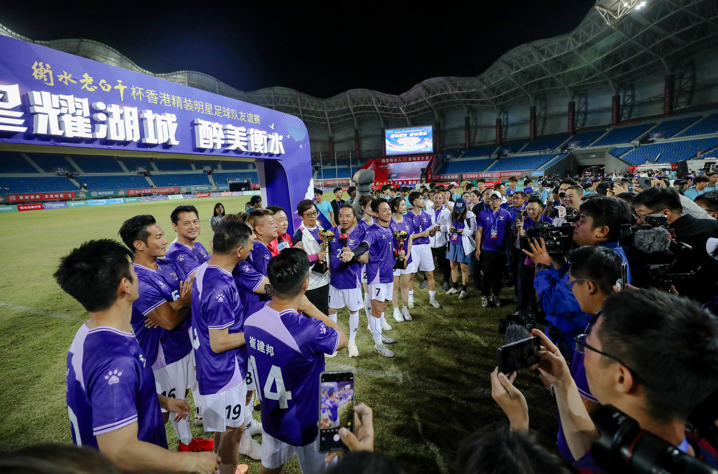5 月 24 日,“星耀湖城 醉美衡水” 香港精装明星足球队友谊赛在衡水市奥体中心盛大举行,上万名热情观众齐聚一堂,共同见证这场足球盛宴。由陈百祥、王晶率领的香港精装明星足球队,与衡水老白干足球联队展开了一场精彩纷呈的对决。