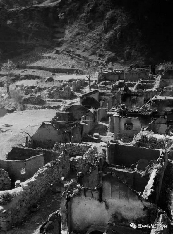 阜平羊和门村被烧的民房。图自冀中抗战微信公众号