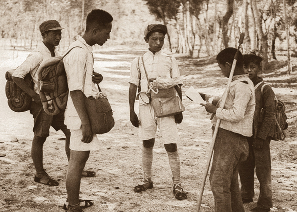 唐县儿童团员站岗查路条。图自冀中抗战微信公众号