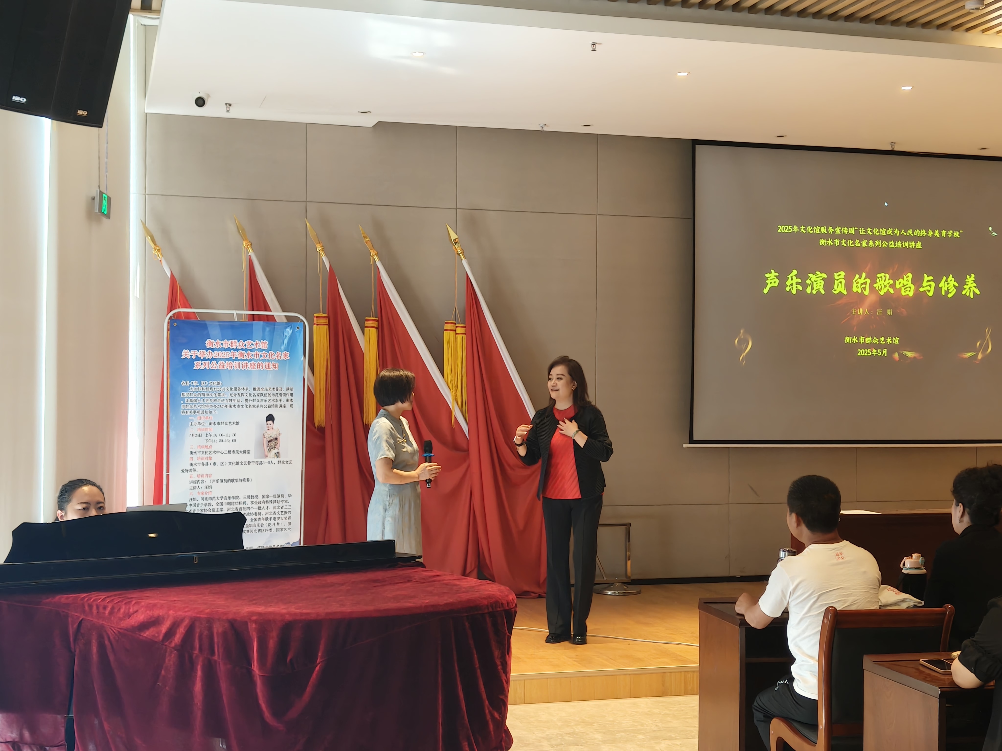 5月26日,衡水市群众艺术馆市民大讲堂开展公益讲座——《声乐演员的歌唱与修养》,吸引了众多声乐爱好者参与,反响热烈。