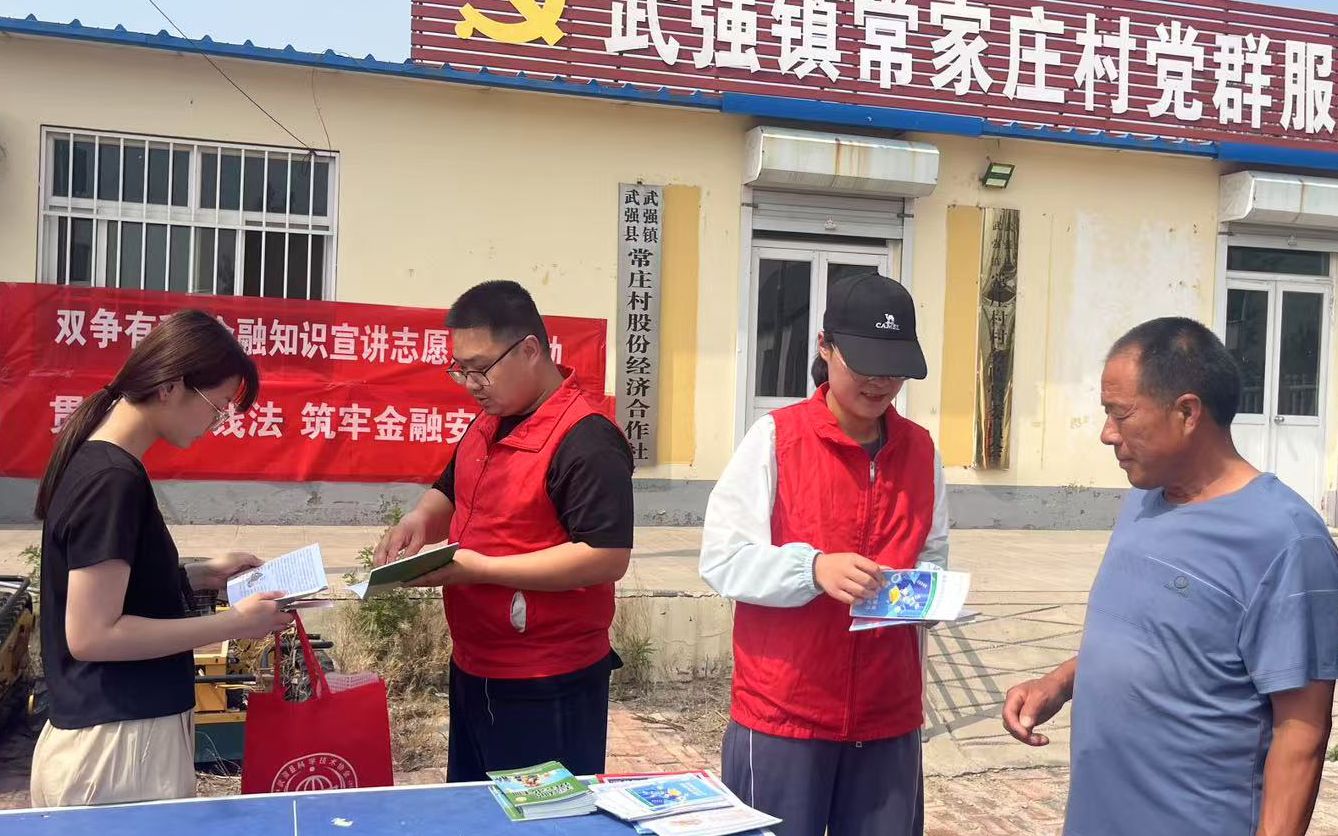 近日,一场以“双争有我 金融知识宣讲志愿服务”为主题的活动在武强县常庄村悄然展开。此次活动由中国人寿武强支公司联合武强县文明实践中心共同组织,旨在通过金融知识的普及,提升乡村居民的金融风险防范意识,守护他们的“钱袋子”。
