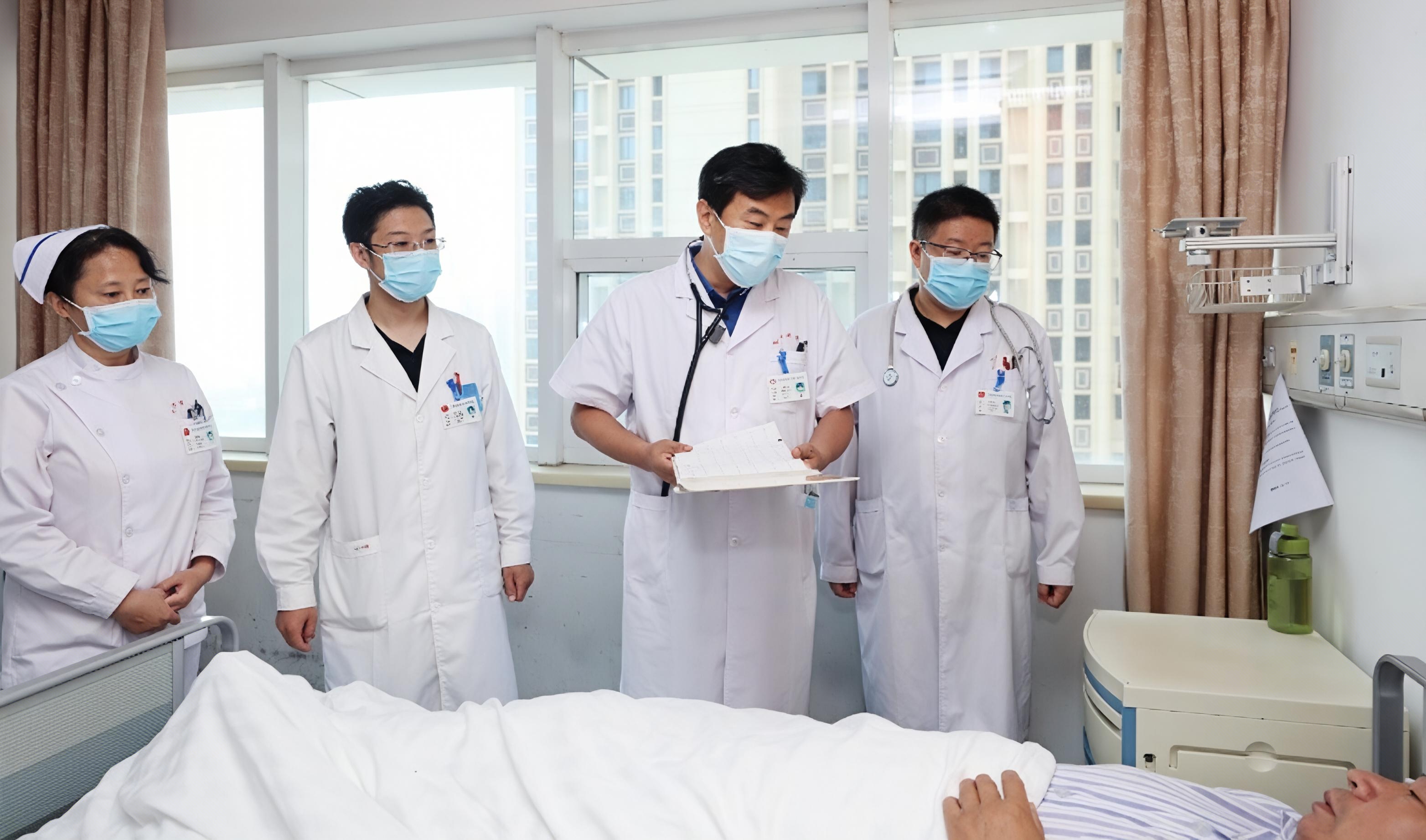 衡水市人民医院(哈励逊国际和平医院)心血管内科医护团队默契配合,充分展现了科室团结协作、积极向上的和谐氛围,为患者和职工营造了充满爱与责任的医疗环境。图为张慧晶主任(右二)与李晓红护士长(左一)进行医护共同查房。