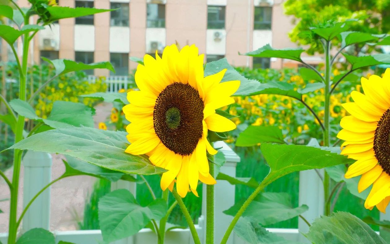 初夏的武邑中学校园里,数千株向日葵整齐列队,金黄的花盘执着追随太阳,在微风中摇曳生姿,汇成一片涌动的金色海洋。这片灿烂花海,并非只是自然生长的风景,而是学校敬立江老师与种植团队悉心耕耘数月,为即将奔赴高考战场的高三学子精心准备的“向阳礼物”。