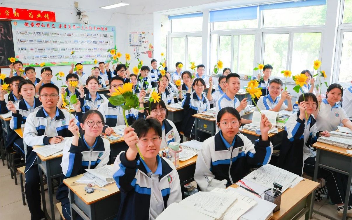 当礼物被送至高三各班,教室里爆发出阵阵惊喜的欢呼。“愿你们如向日葵般心向光明,考场上一举夺魁!”老师们真挚的祝福伴随着花朵的灿烂一同抵达。顷刻间,高三教室的课桌角落被点亮——朵朵金黄悄然绽放,为伏案苦读的身影投下一束温暖的光。
