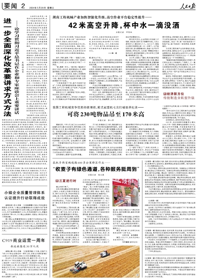 《人民日报》2024年5月29日2版刊发《我国工程机械竞争优势持续增强,轮式起重机七次打破世界纪录——可将230吨物品吊至170米高》