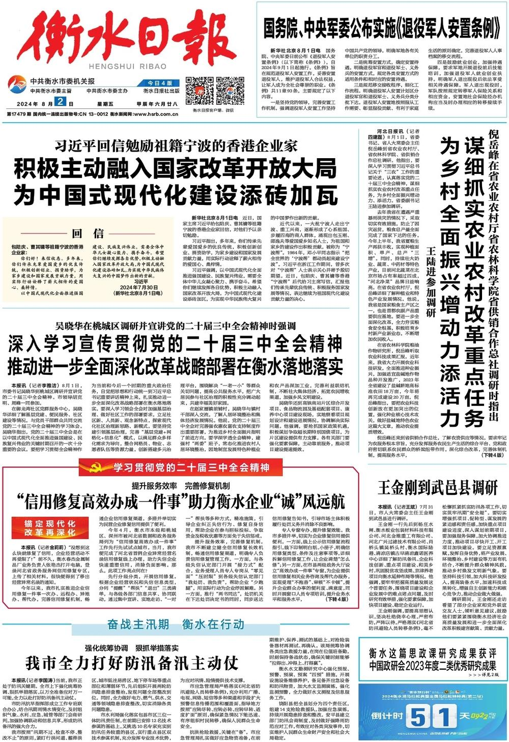 《衡水日报》2024年8月2日头版“锚定现代化 改革再深化”专栏