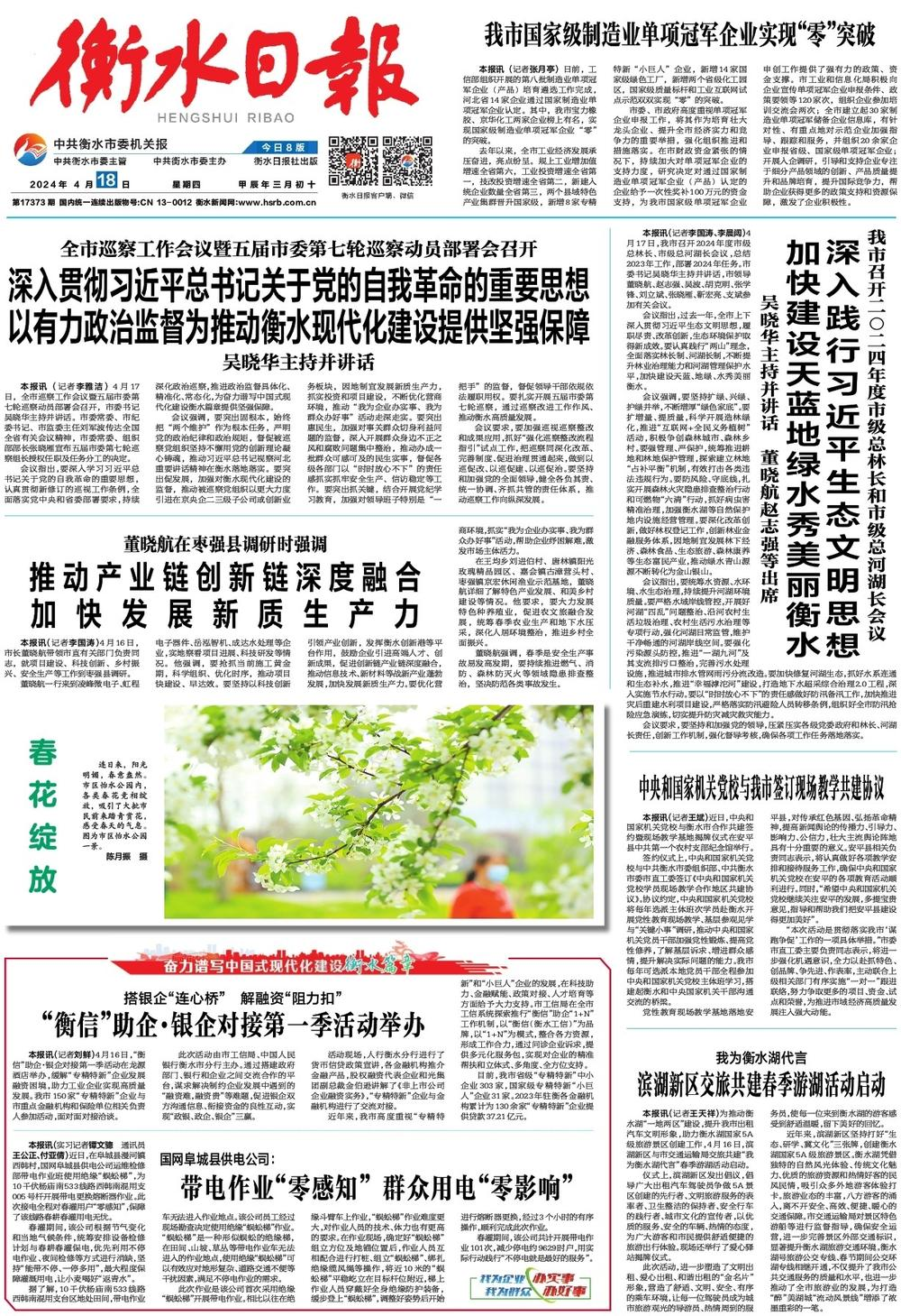 《衡水日报》2024年4月18日头版“奋力谱写中国式现代化建设衡水篇章”专栏